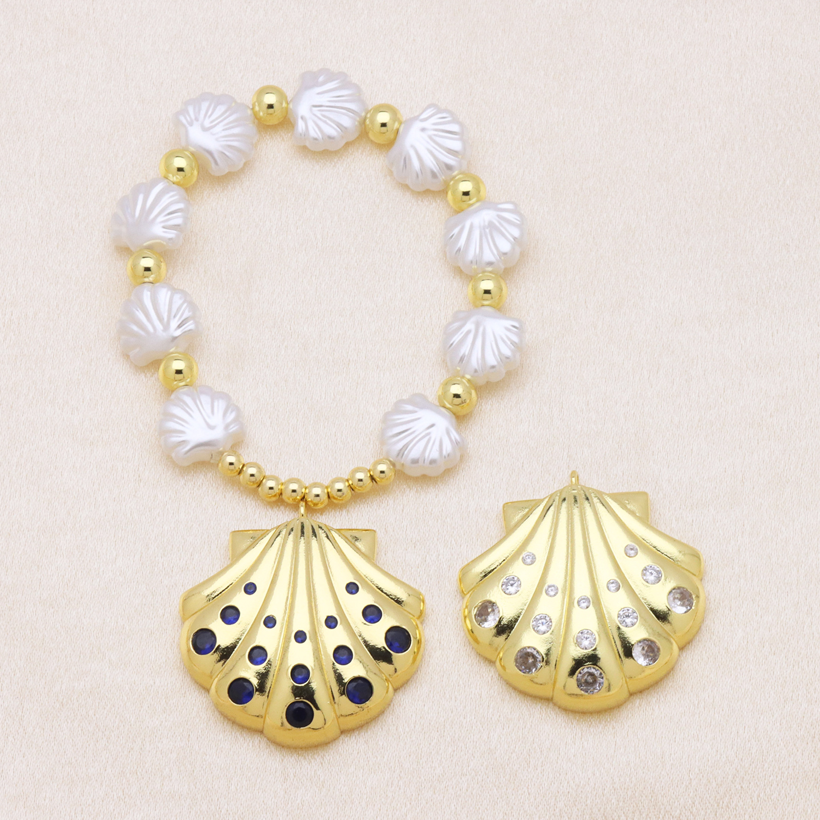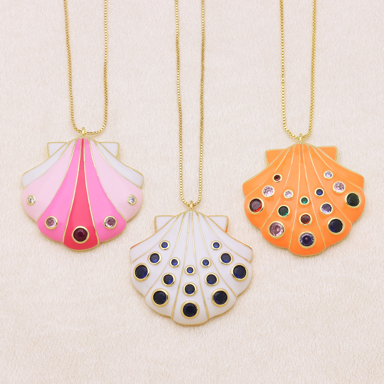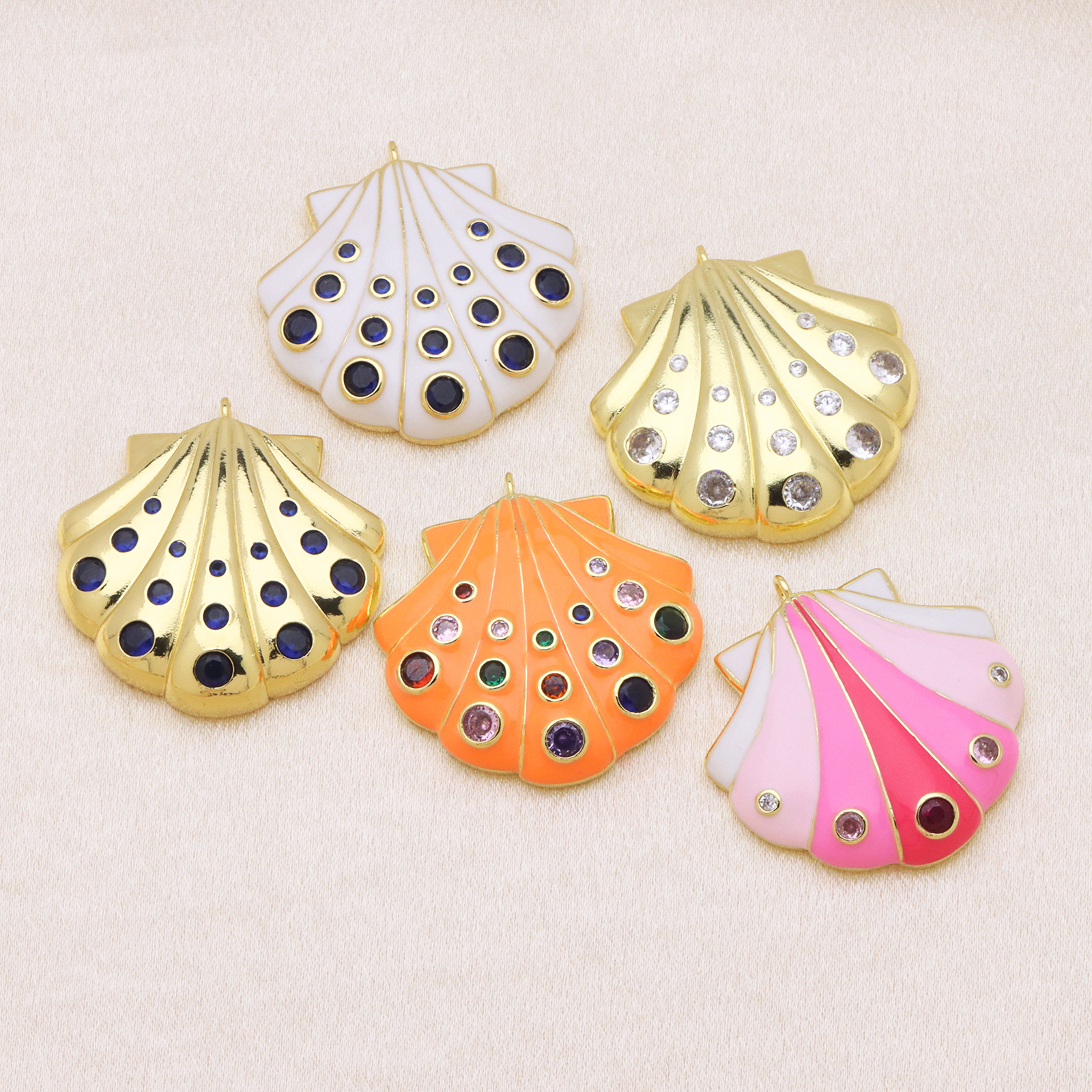 Cubic Zirconia Micro Pave Brass Pendant, Shell, gold color plated, DIY & different styles for choice & micro pave cubic zirconia & enamel, more colors for choice, 35x37mm, Sold By PC
