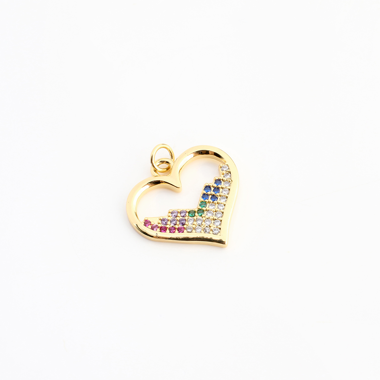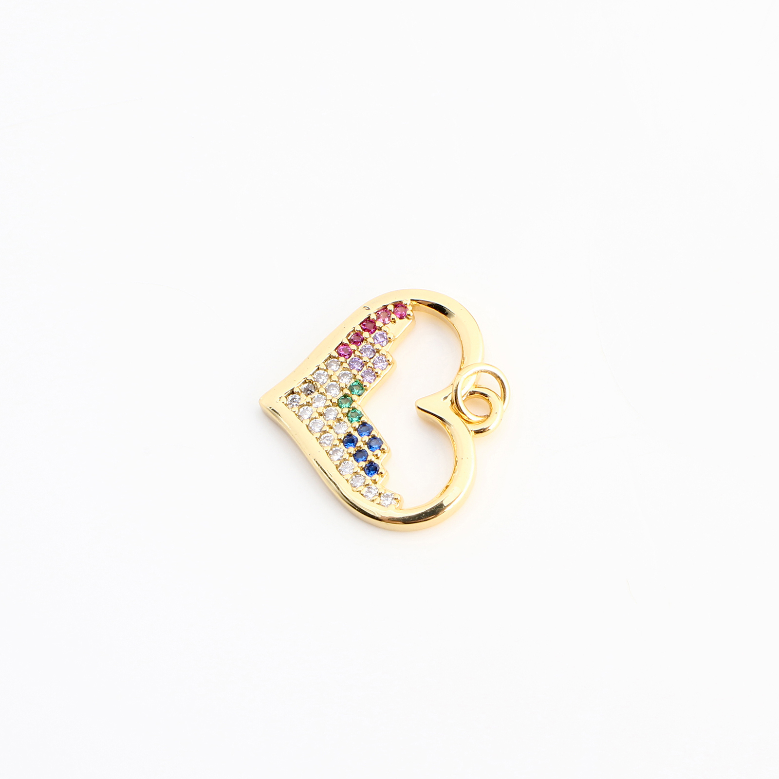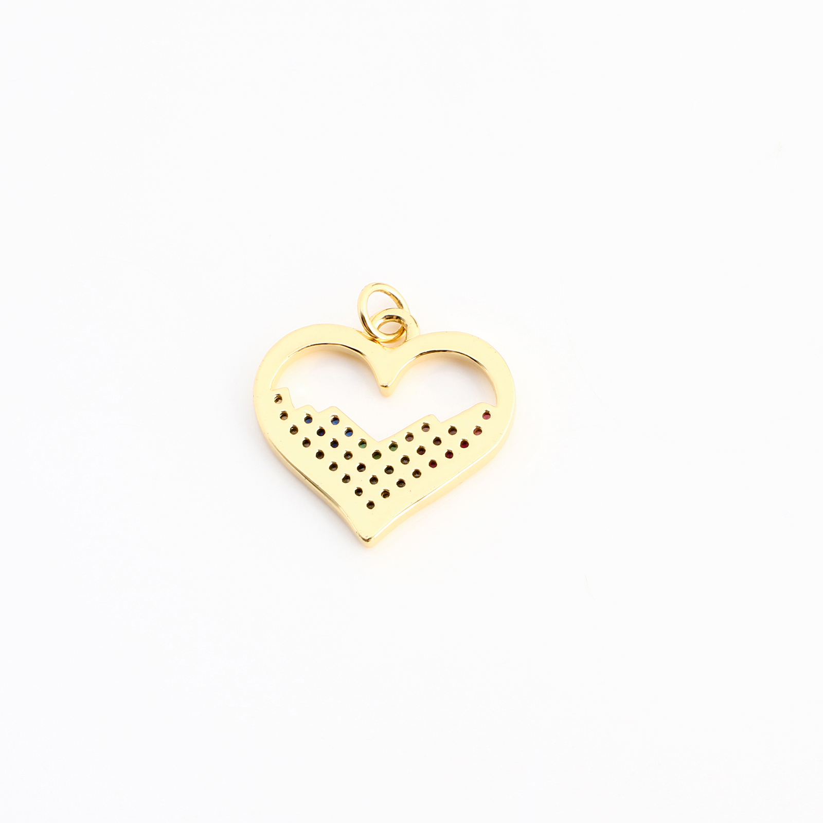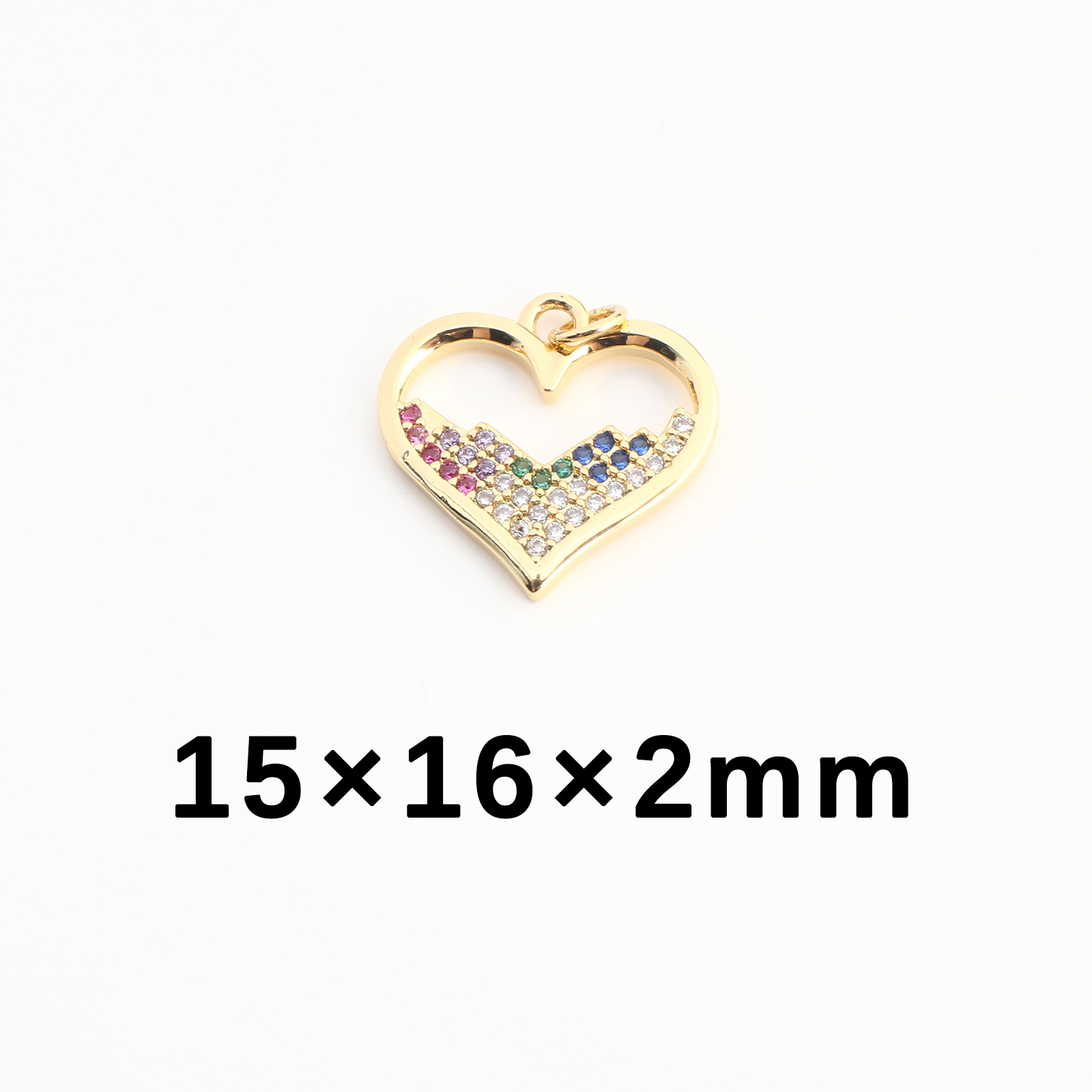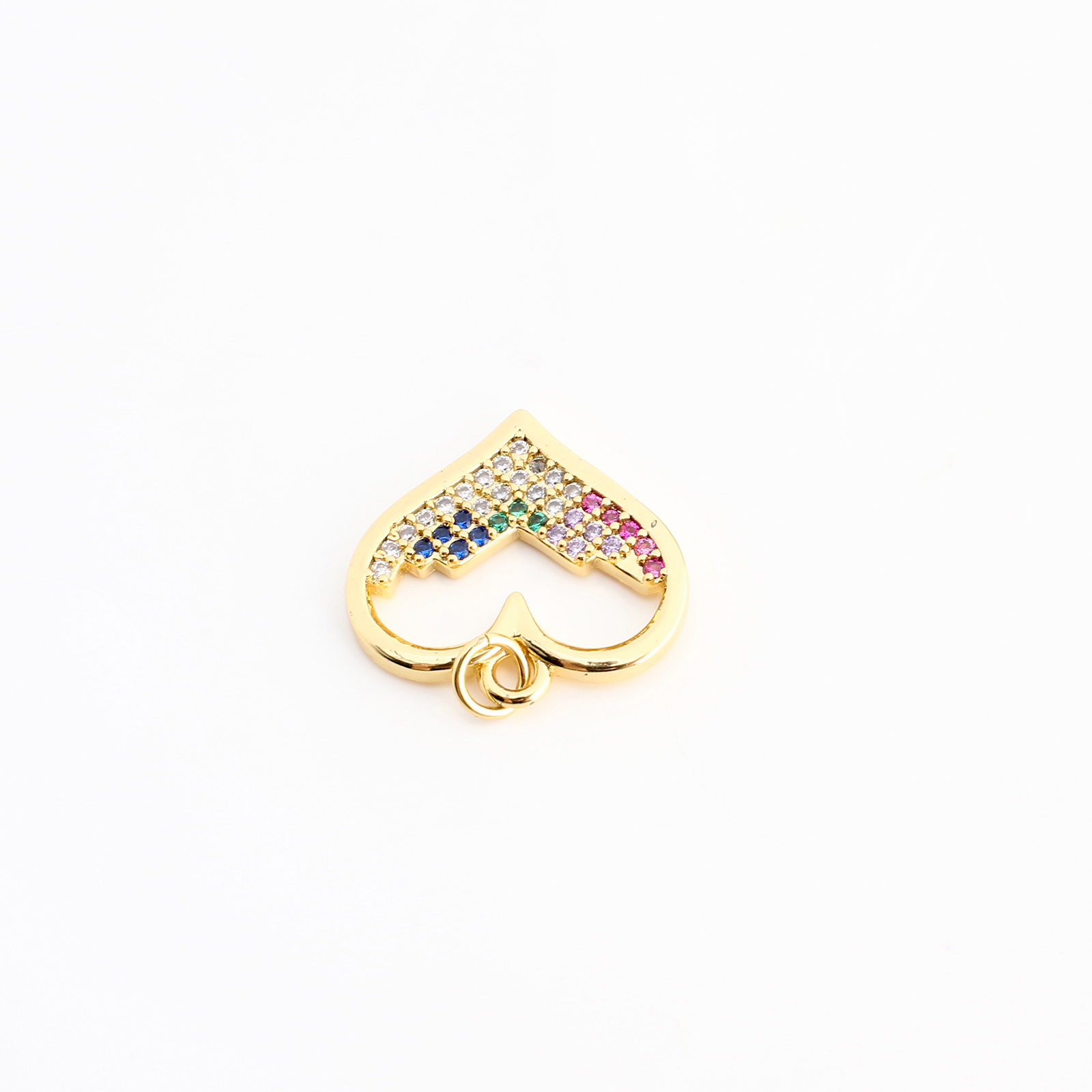 Cubic Zirconia Micro Pave Brass Pendant, Heart, gold color plated, micro pave cubic zirconia, multi-colored, 12x13x4mm, Hole:Approx 2mm, Sold By PC