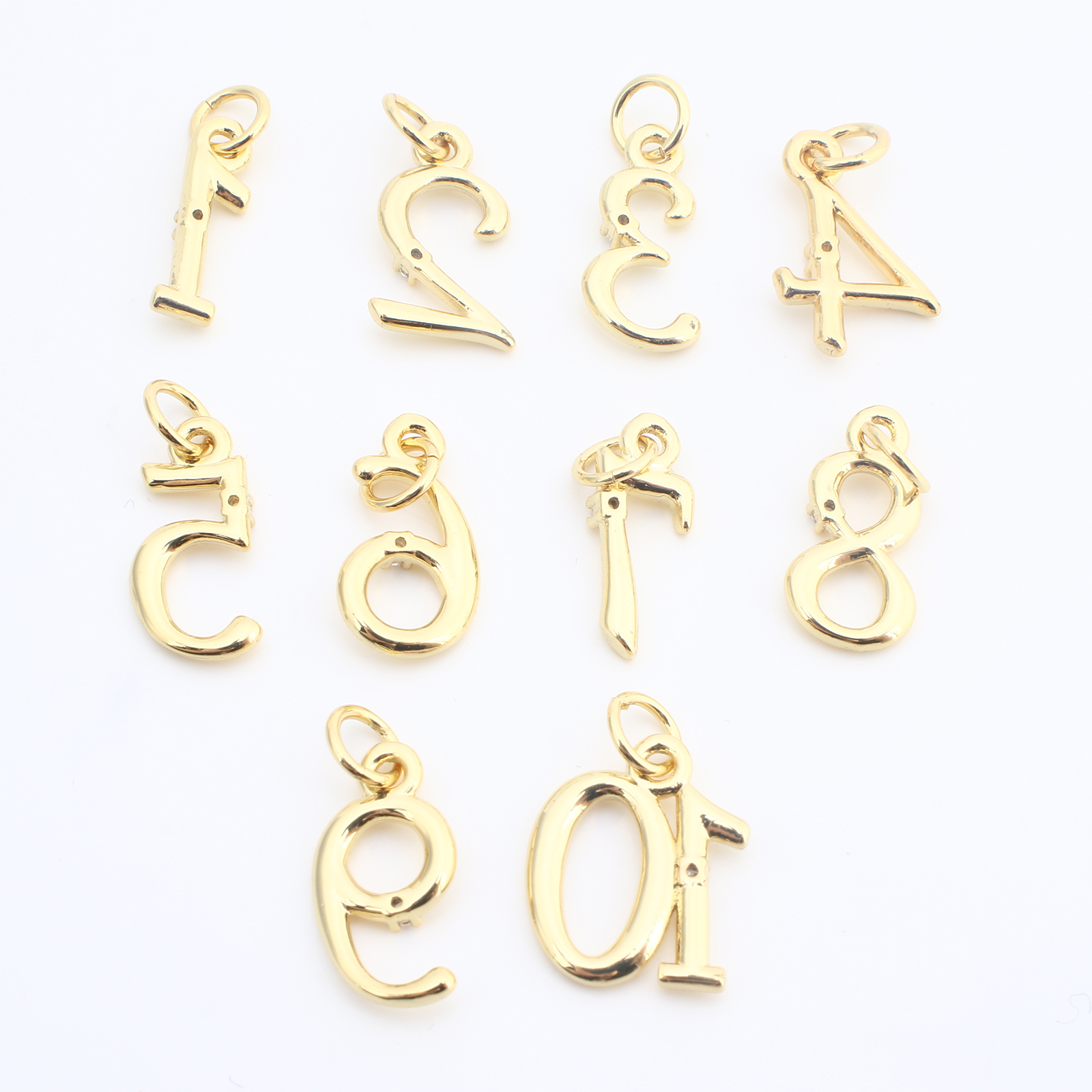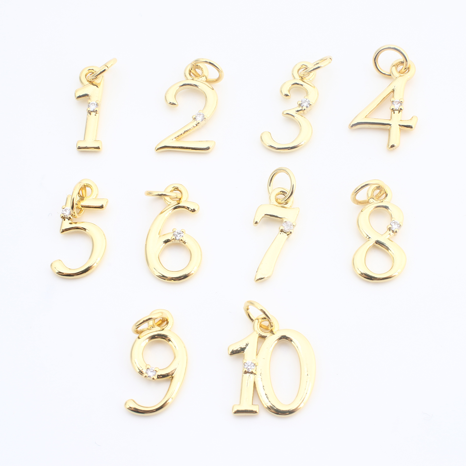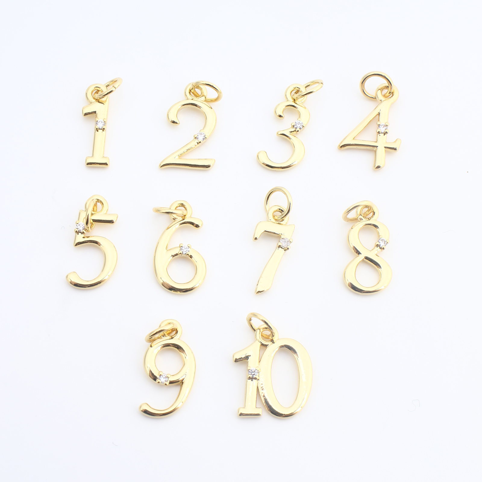 Cubic Zirconia Micro Pave Brass Pendant, Number, plated, DIY & micro pave cubic zirconia, golden, 14x7x2mm, Sold By PC