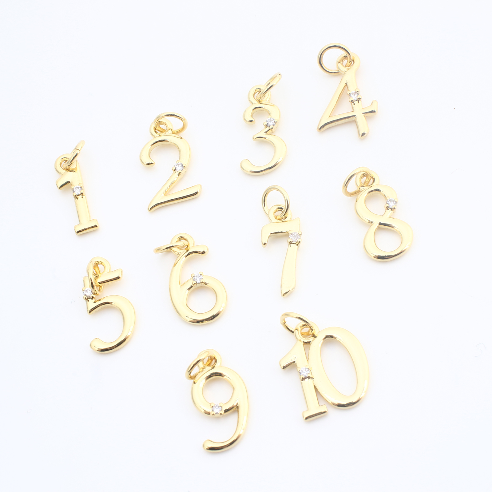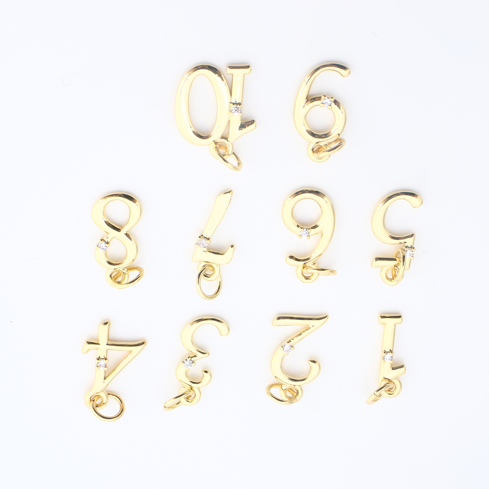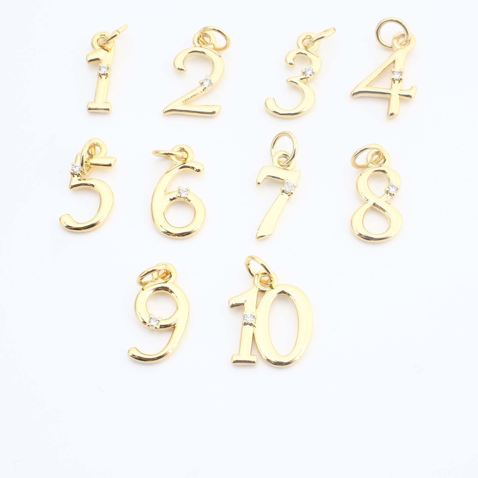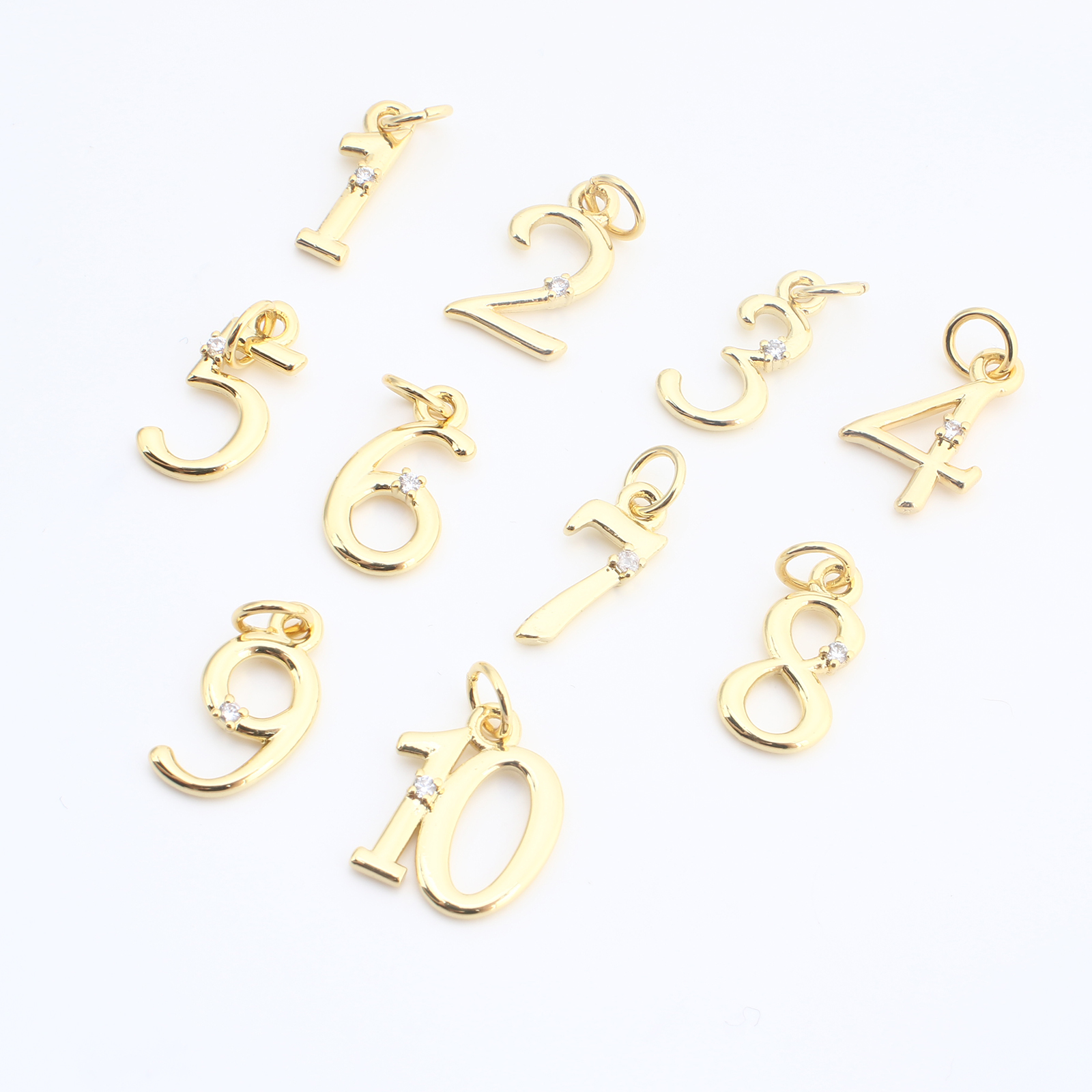 Cubic Zirconia Micro Pave Brass Pendant, Number, plated, DIY & micro pave cubic zirconia, golden, 14x7x2mm, Sold By PC