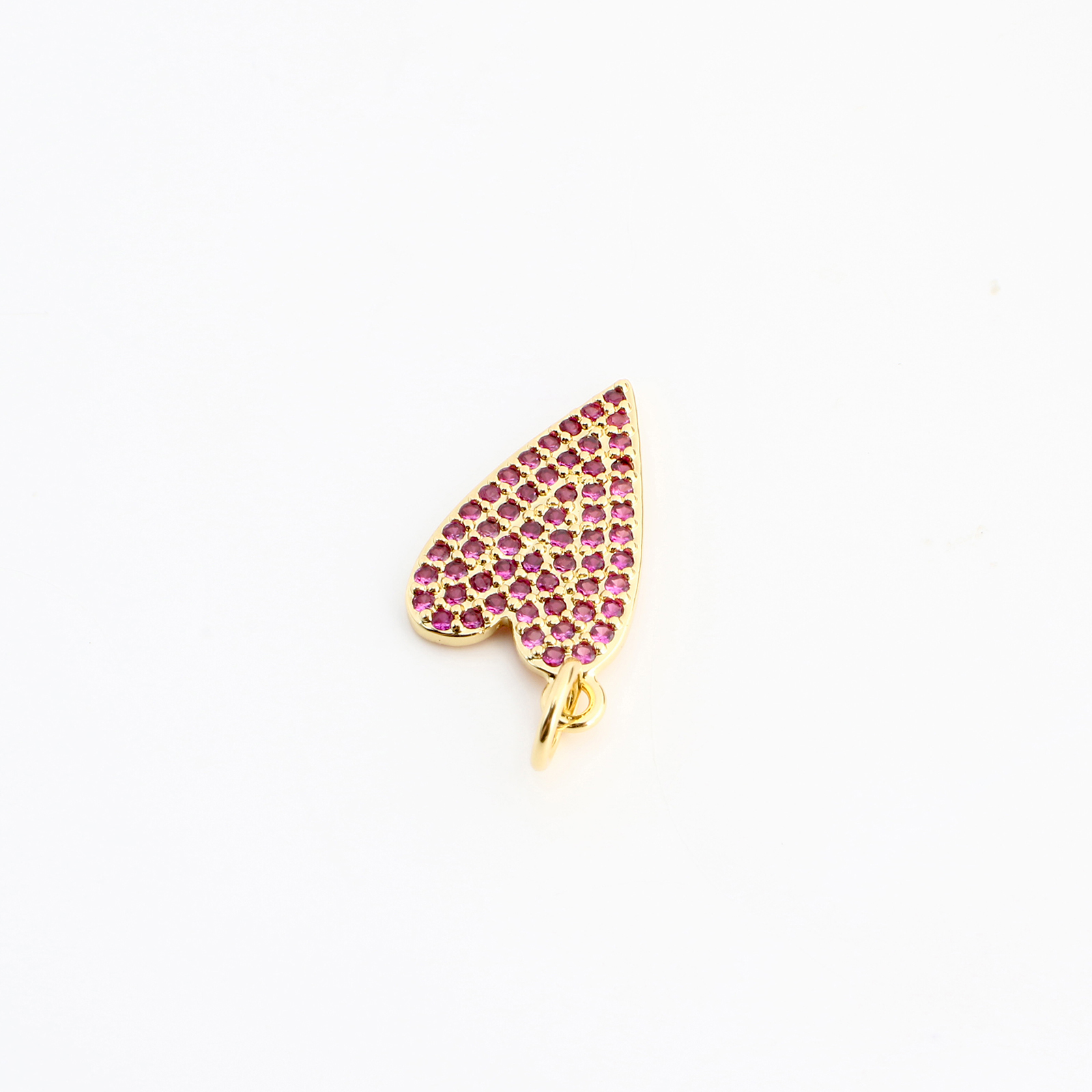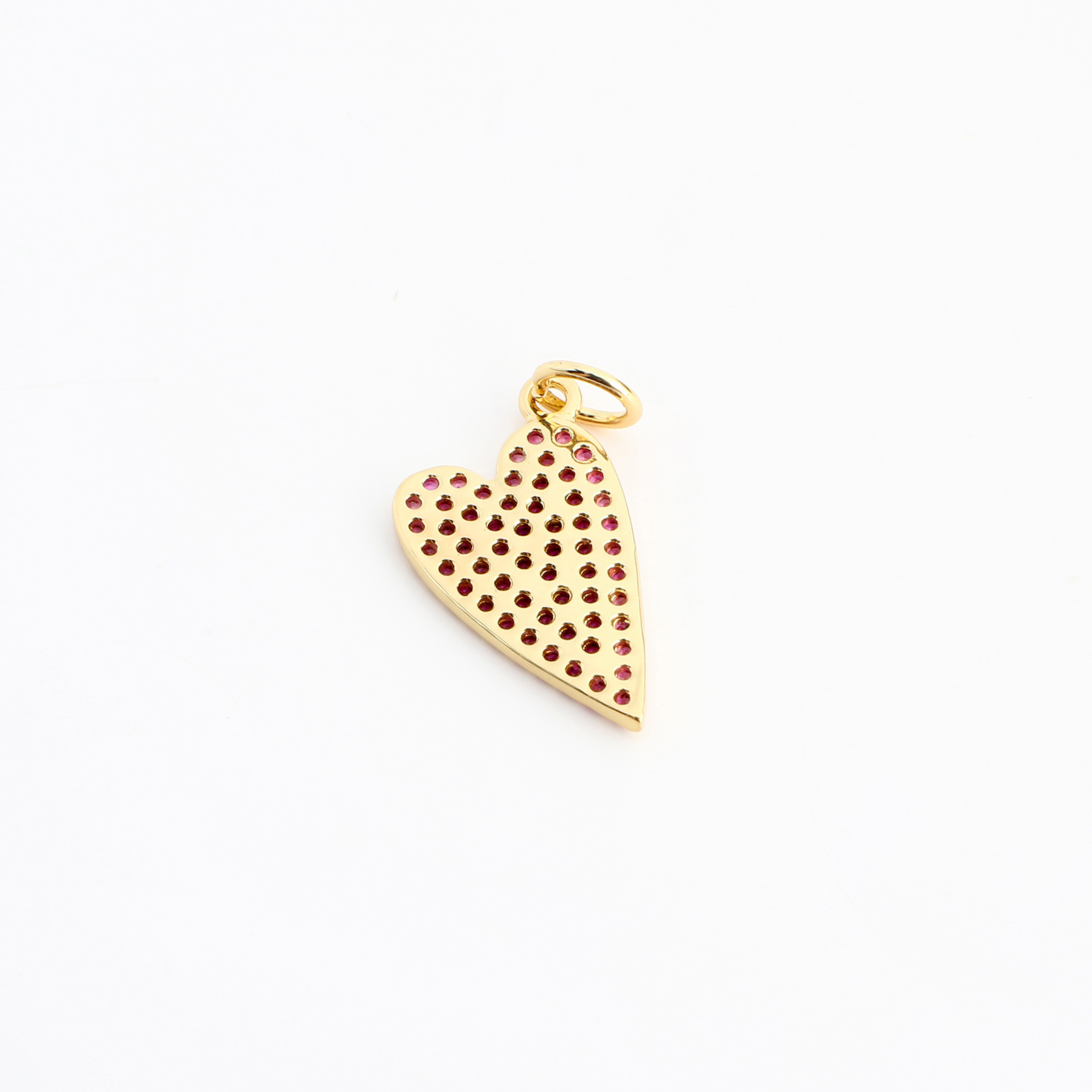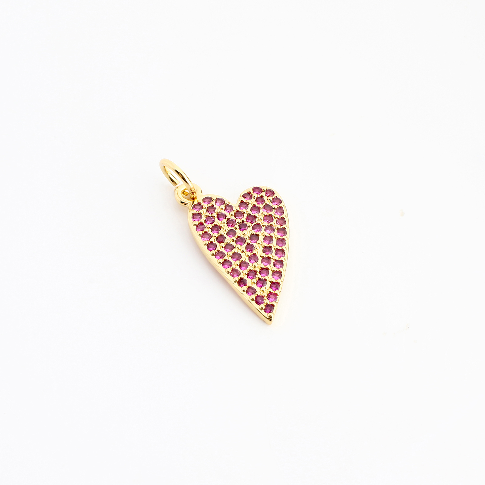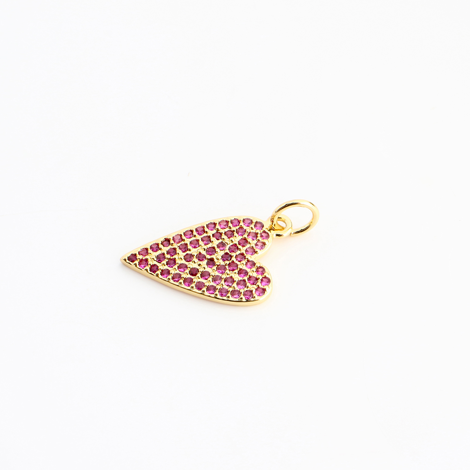 Cubic Zirconia Micro Pave Brass Pendant, Heart, gold color plated