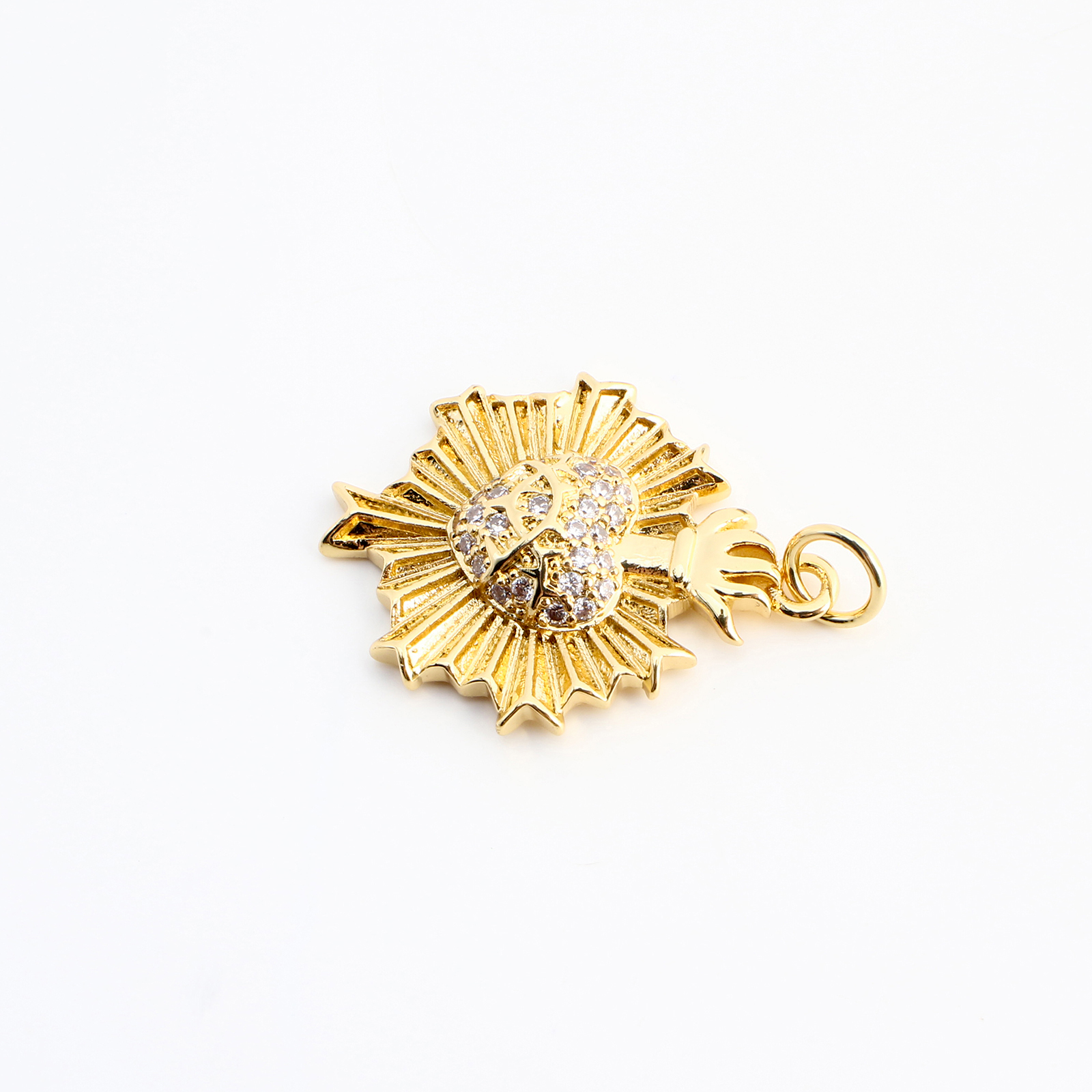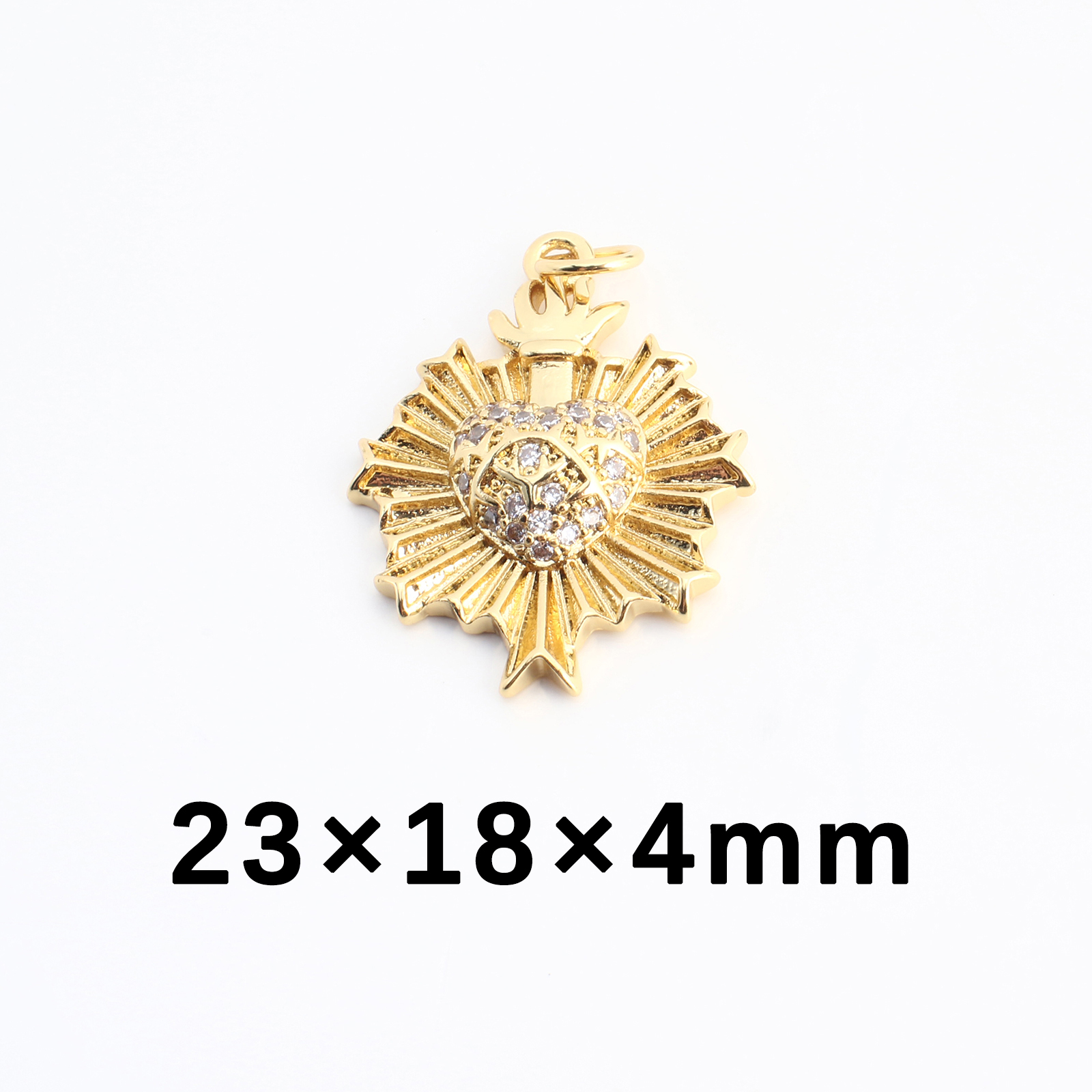 Cubic Zirconia Micro Pave Brass Pendant, DIY & micro pave cubic zirconia, golden, 23x18x4mm, Sold By PC