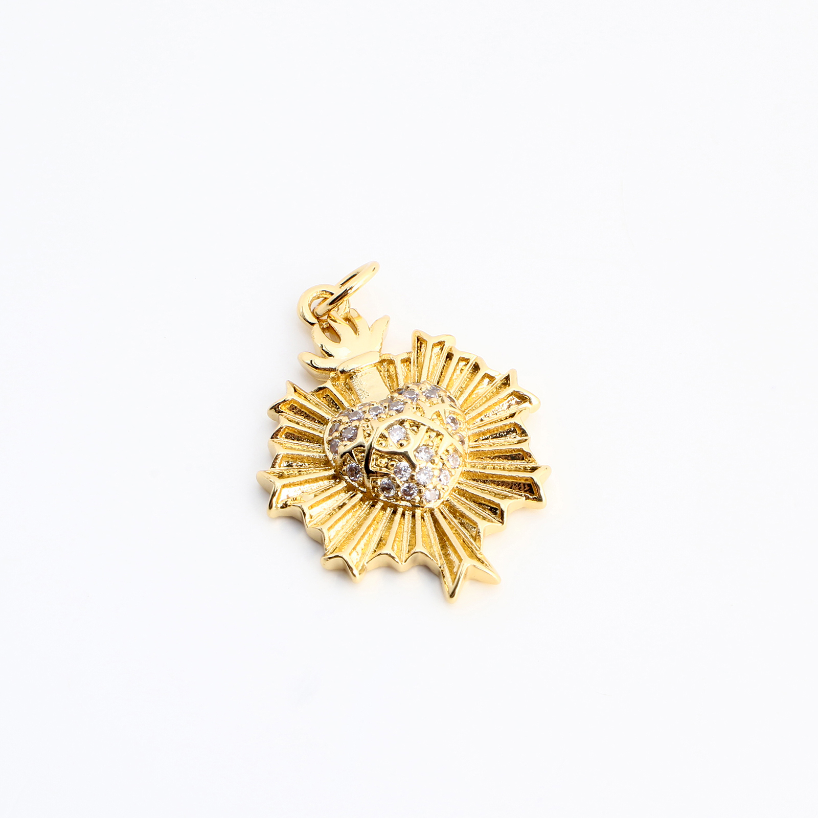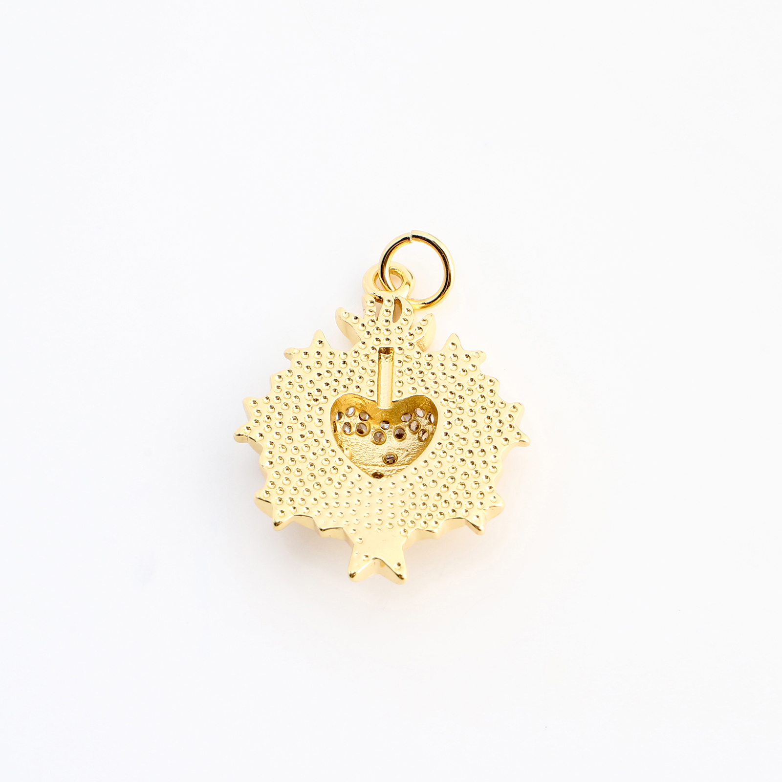 Cubic Zirconia Micro Pave Brass Pendant, Heart, gold color plated