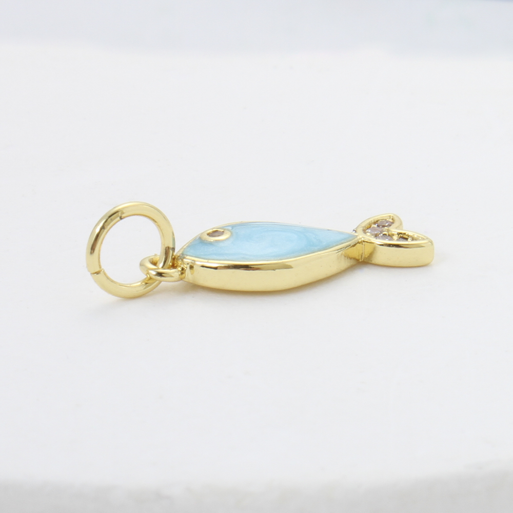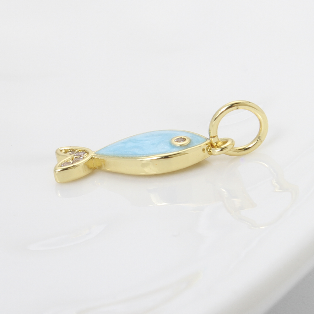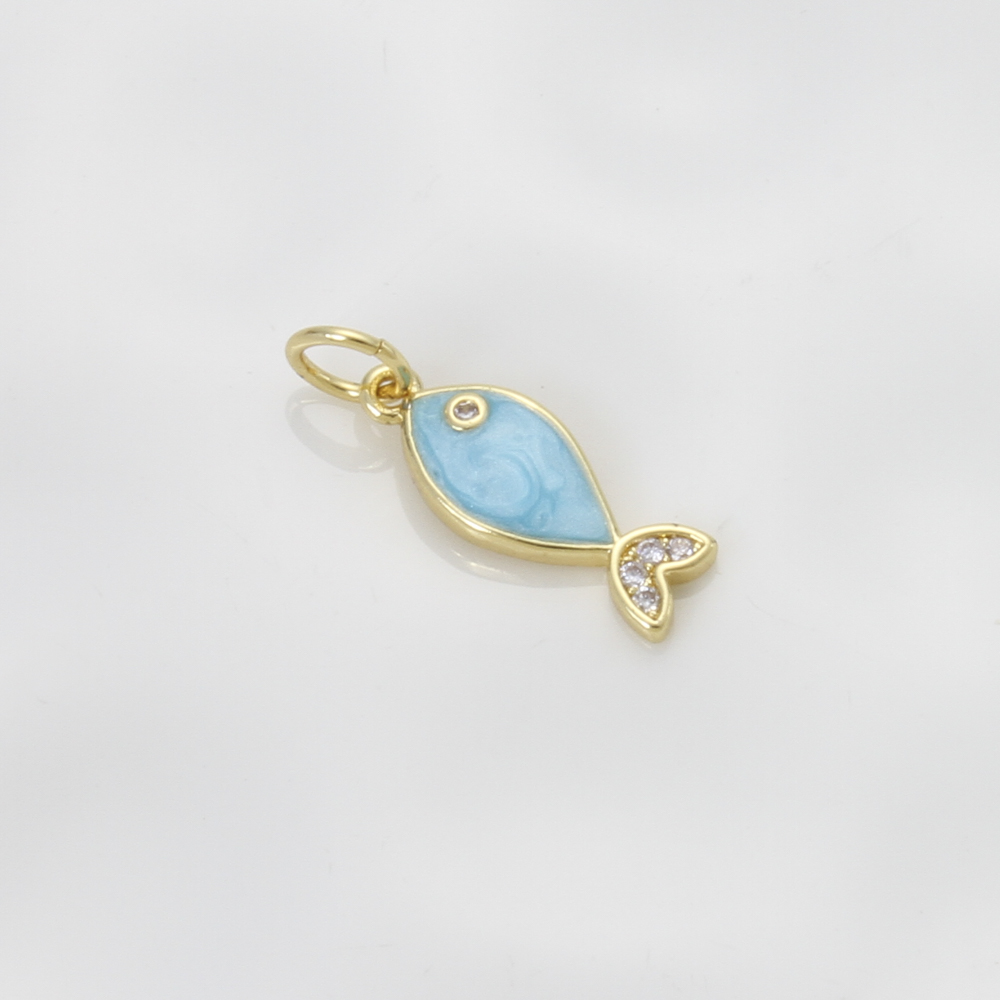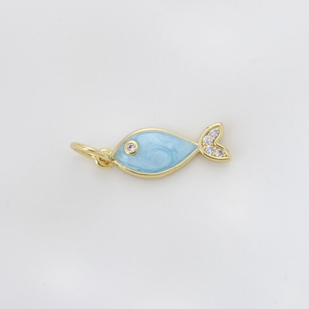 Cubic Zirconia Micro Pave Brass Pendant, Fish, plated, DIY & micro pave cubic zirconia & enamel, blue, nickel, lead & cadmium free, 15.40x6x2mm, Sold By PC