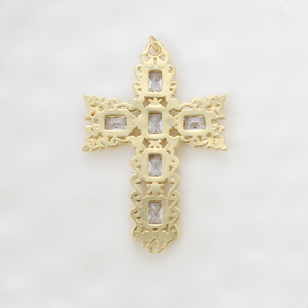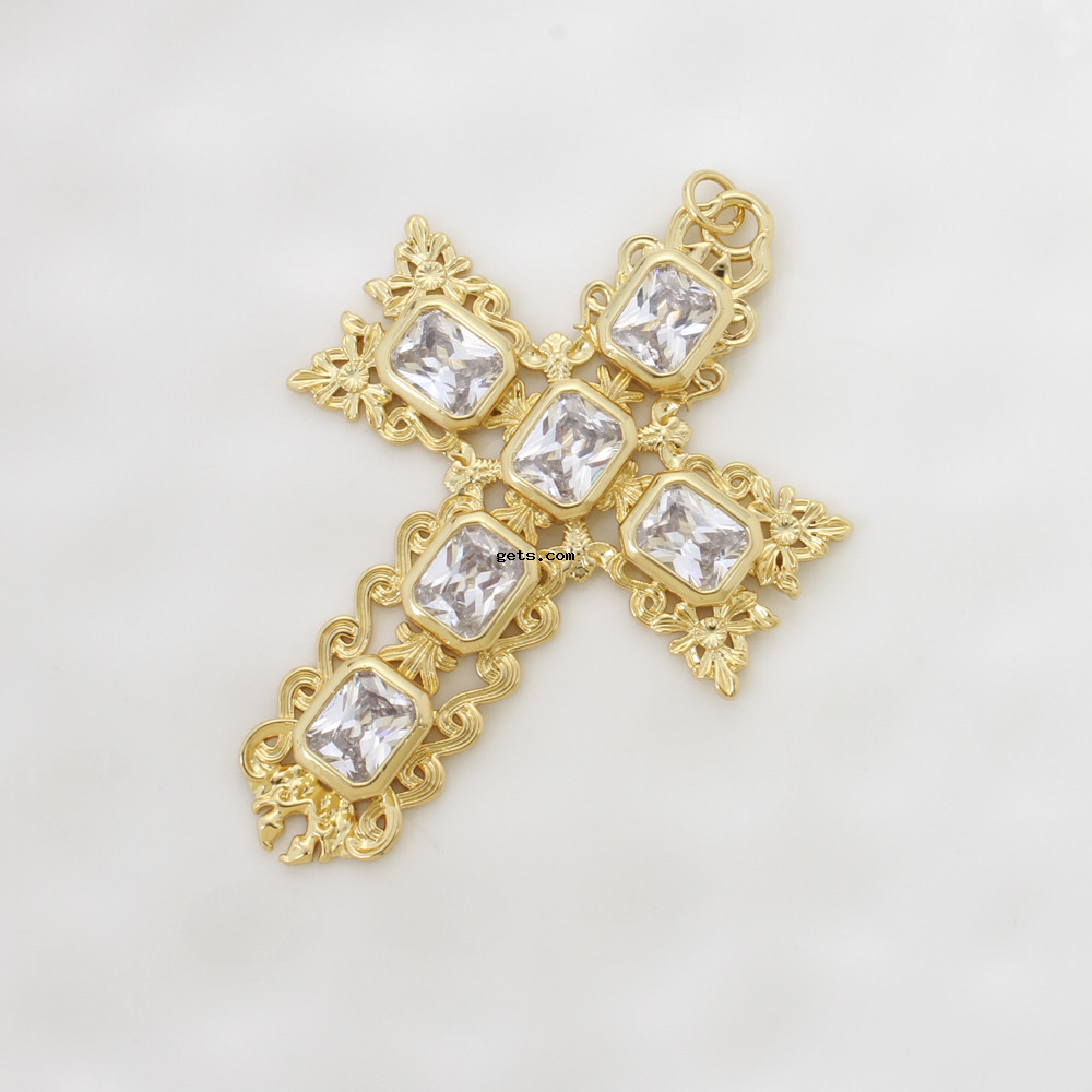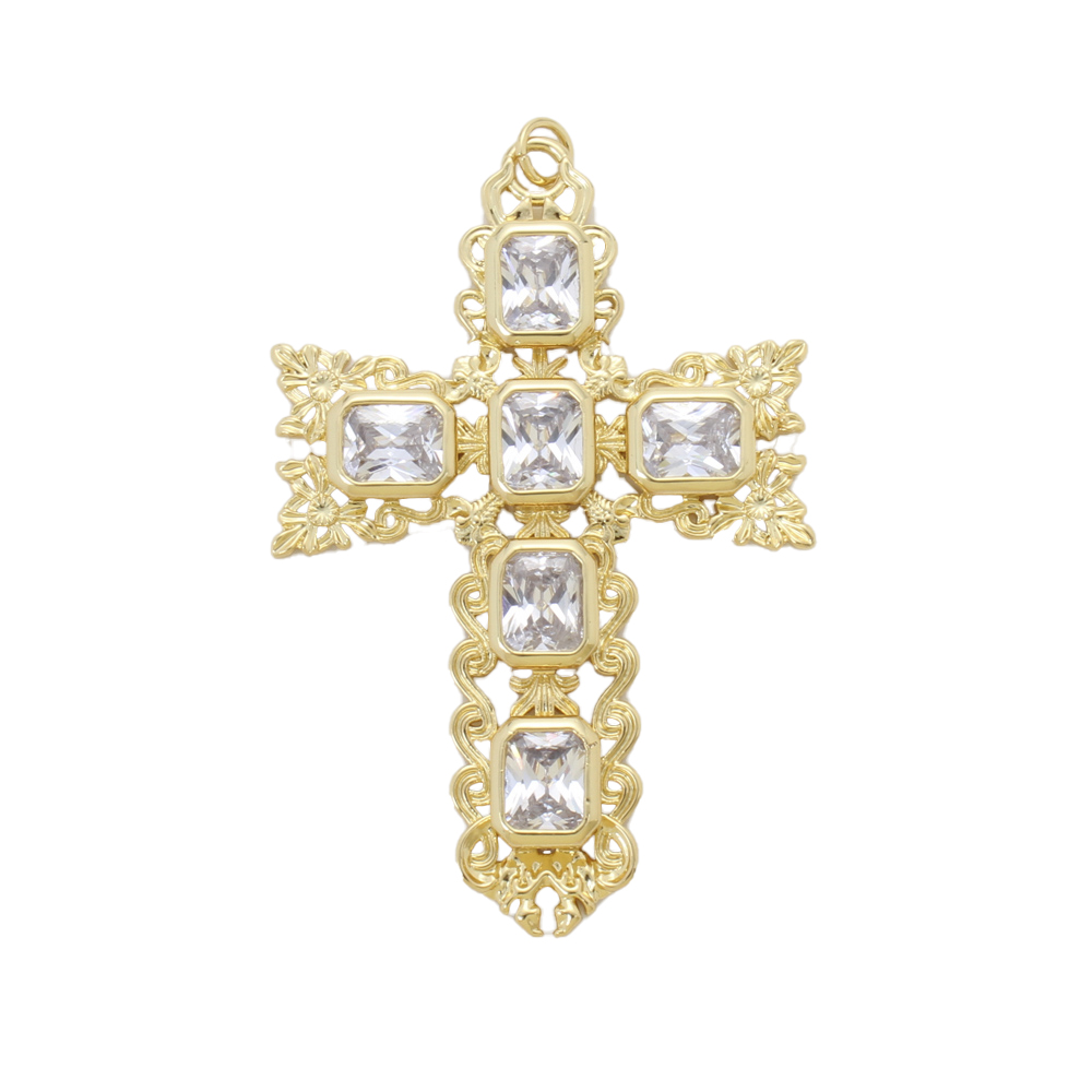 Cubic Zirconia Micro Pave Brass Pendant, Cross, plated, DIY & micro pave cubic zirconia, gold, nickel, lead & cadmium free, 70.20x47x4.60mm, Sold By PC