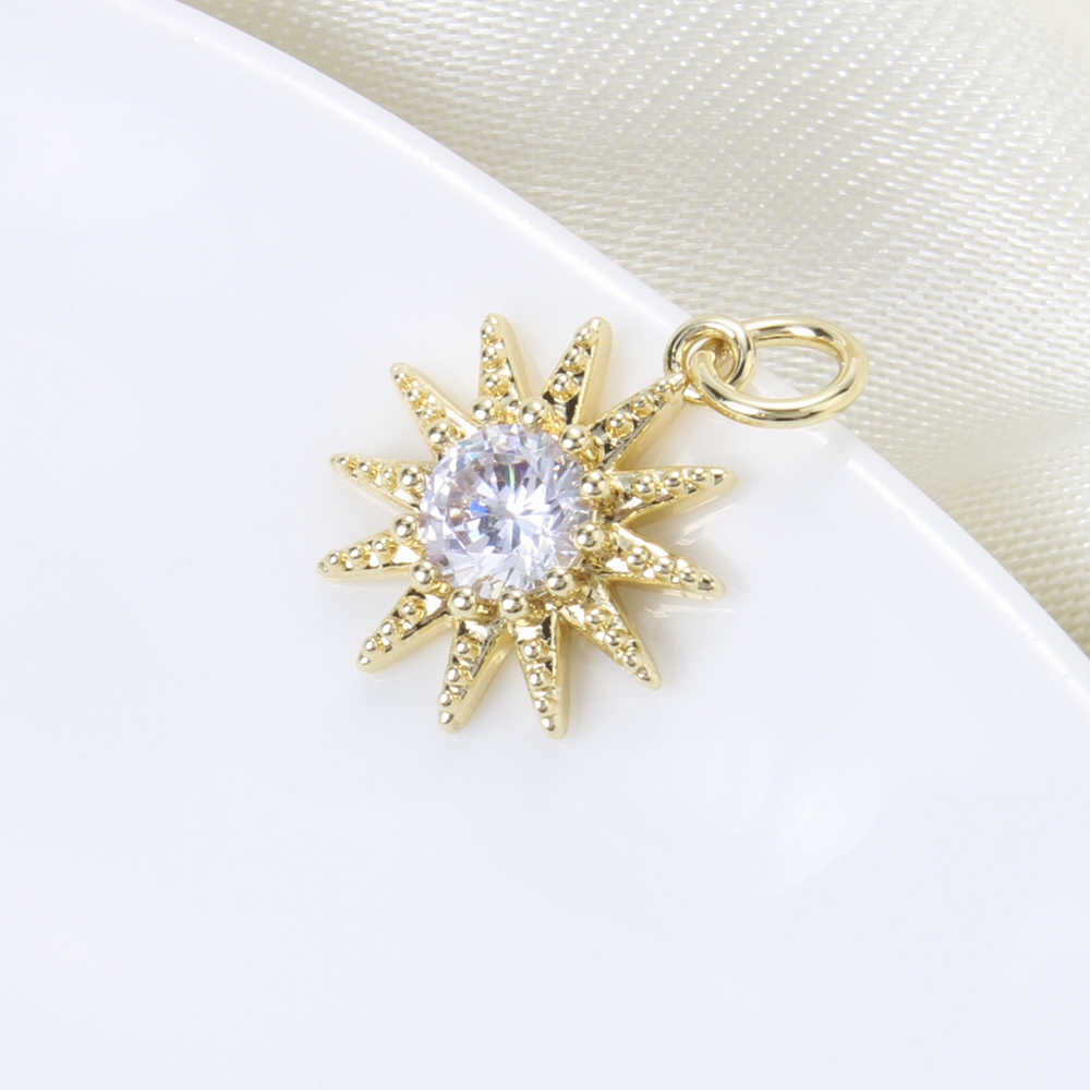 Cubic Zirconia Micro Pave Brass Pendant, Sun, plated, DIY & micro pave cubic zirconia, gold, nickel, lead & cadmium free, 14.40x12.50x3.70mm, Sold By PC