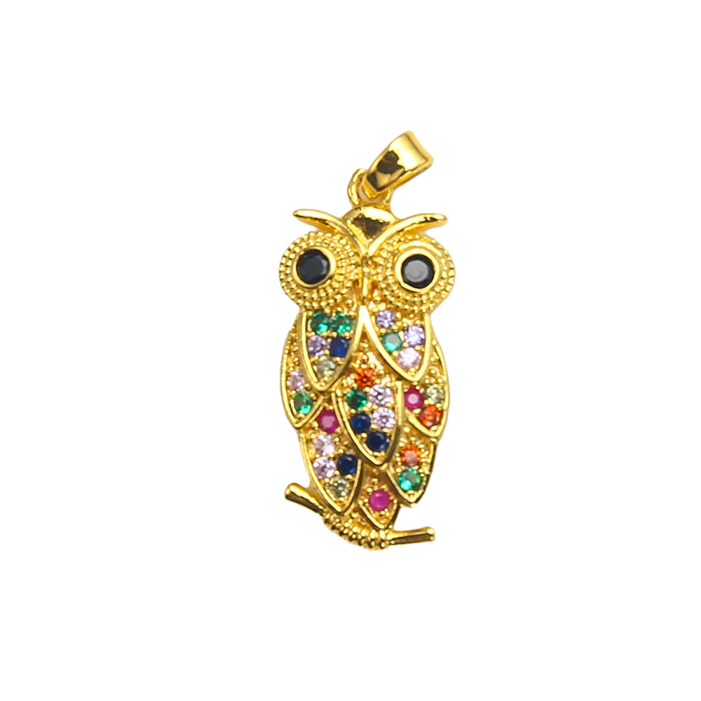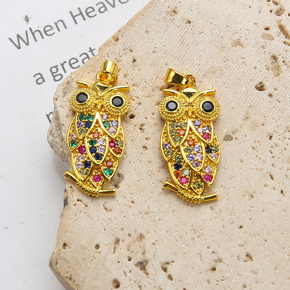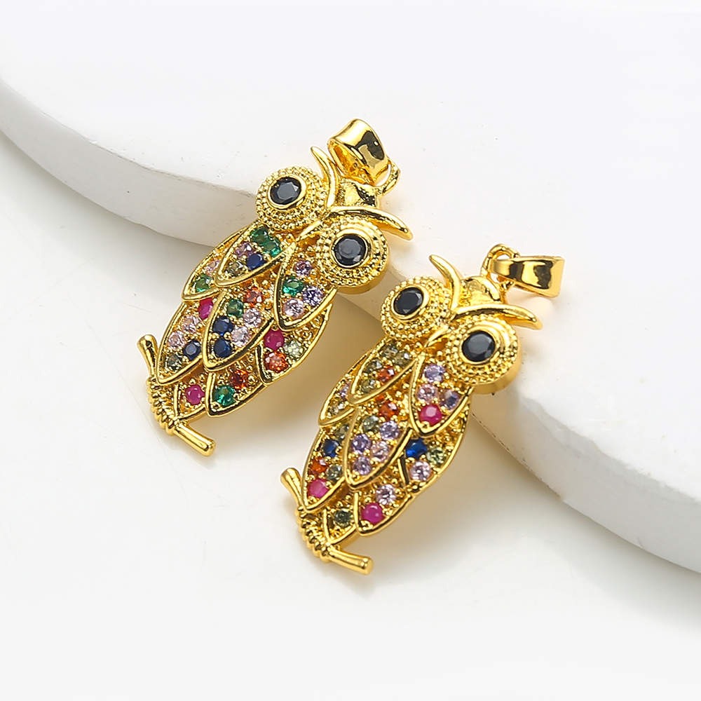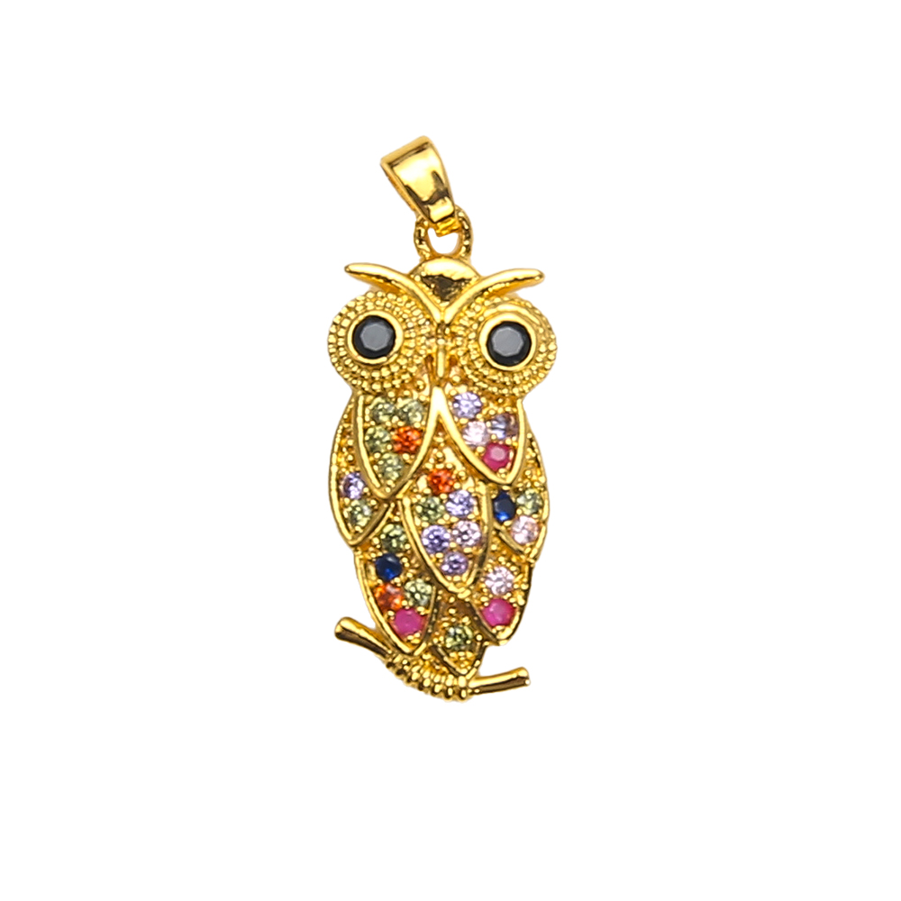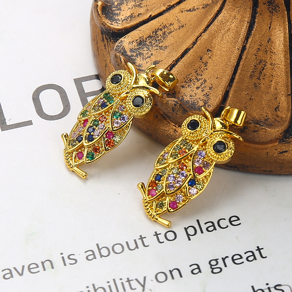 Cubic Zirconia Micro Pave Brass Pendant, Owl, plated, DIY & micro pave cubic zirconia, golden, nickel, lead & cadmium free, 12x3.23x30.06mm, 20PCs/Bag, Sold By Bag