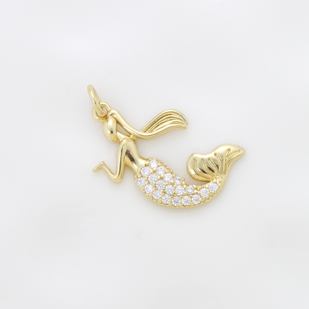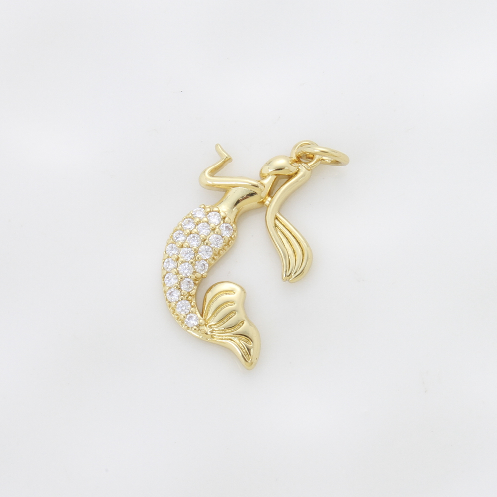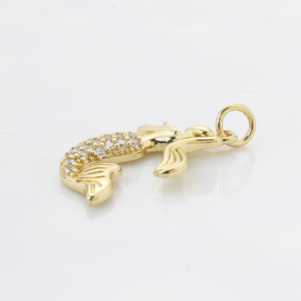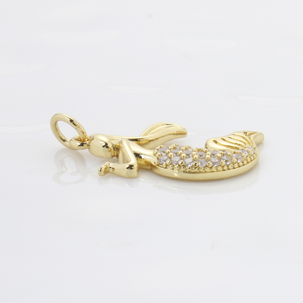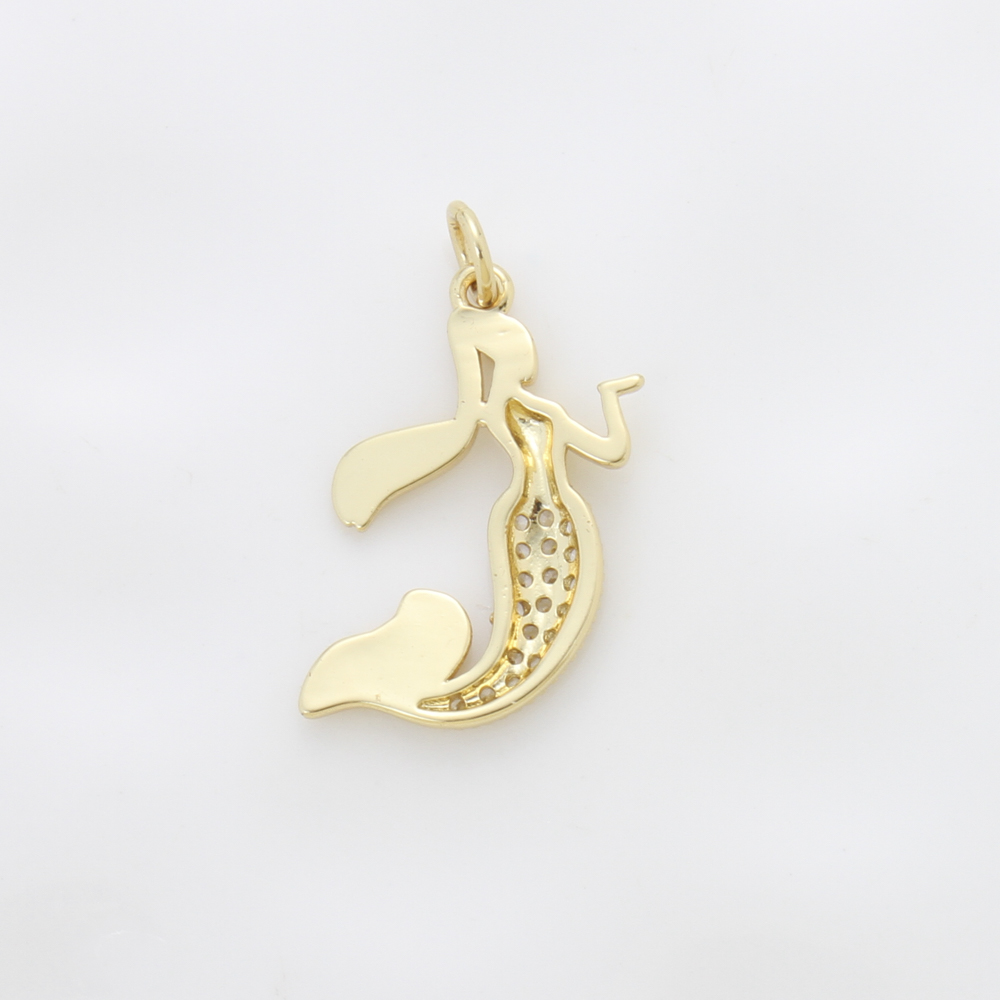 Cubic Zirconia Micro Pave Brass Pendant, Mermaid, plated, DIY & micro pave cubic zirconia, golden, nickel, lead & cadmium free, 22.30x13x2.50mm, Sold By PC