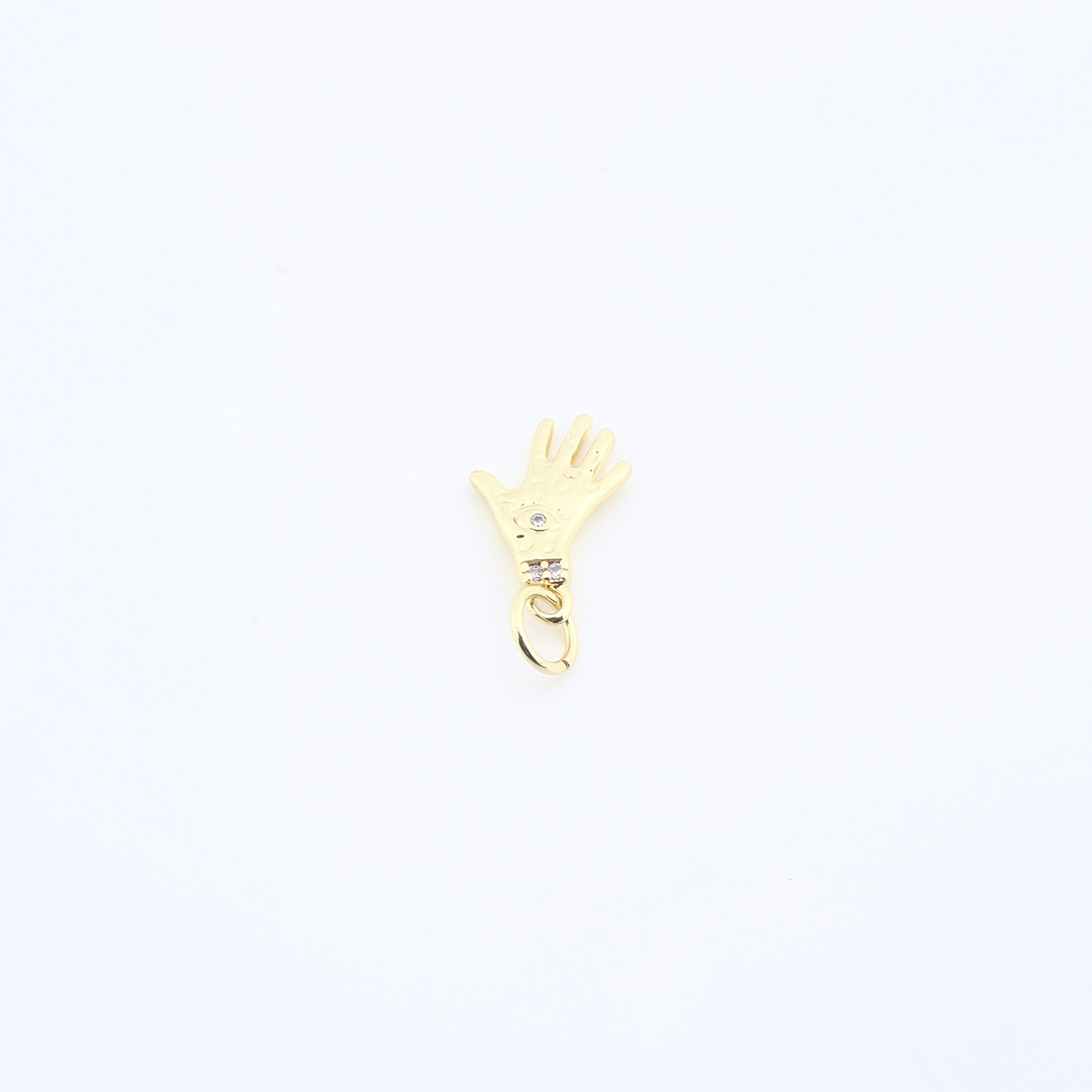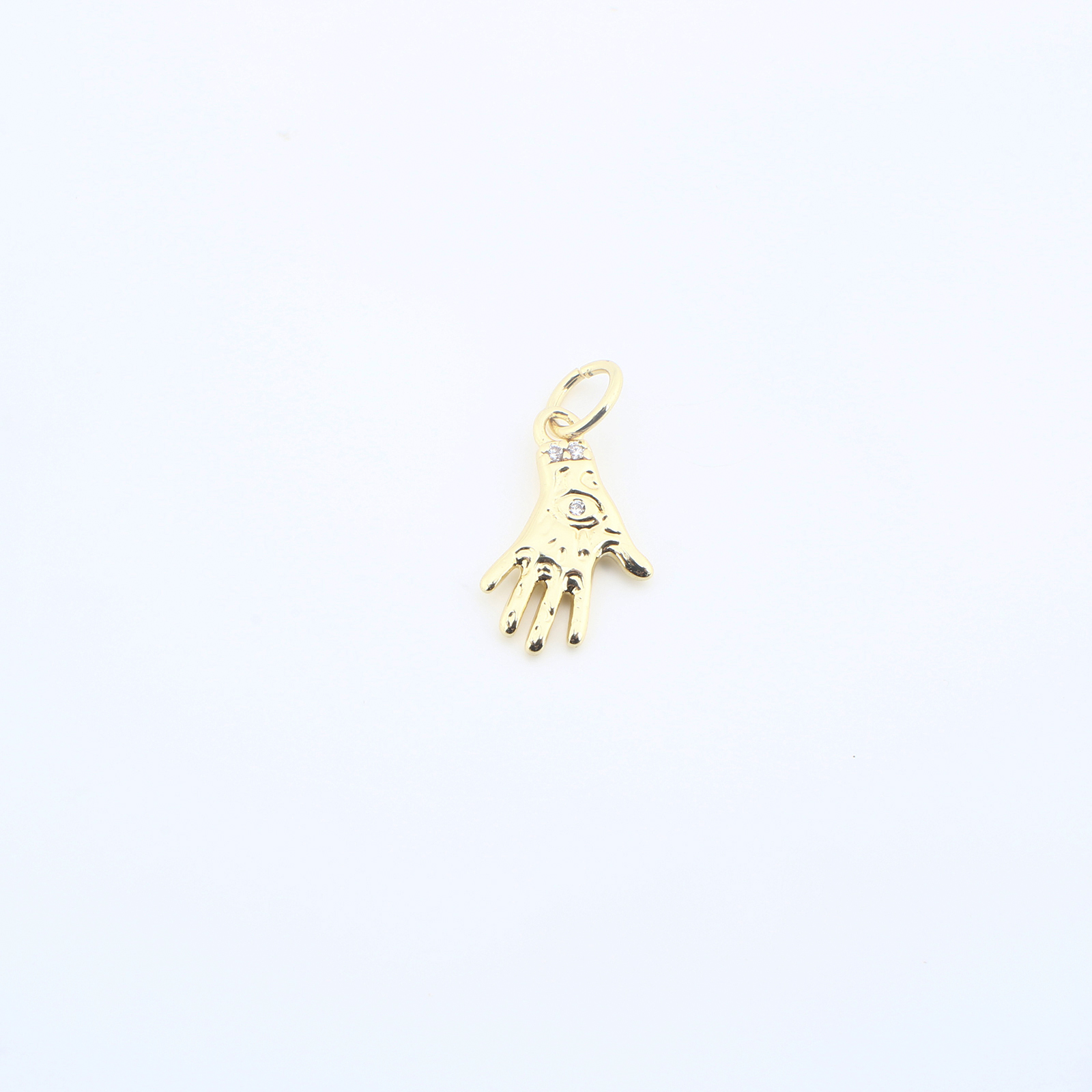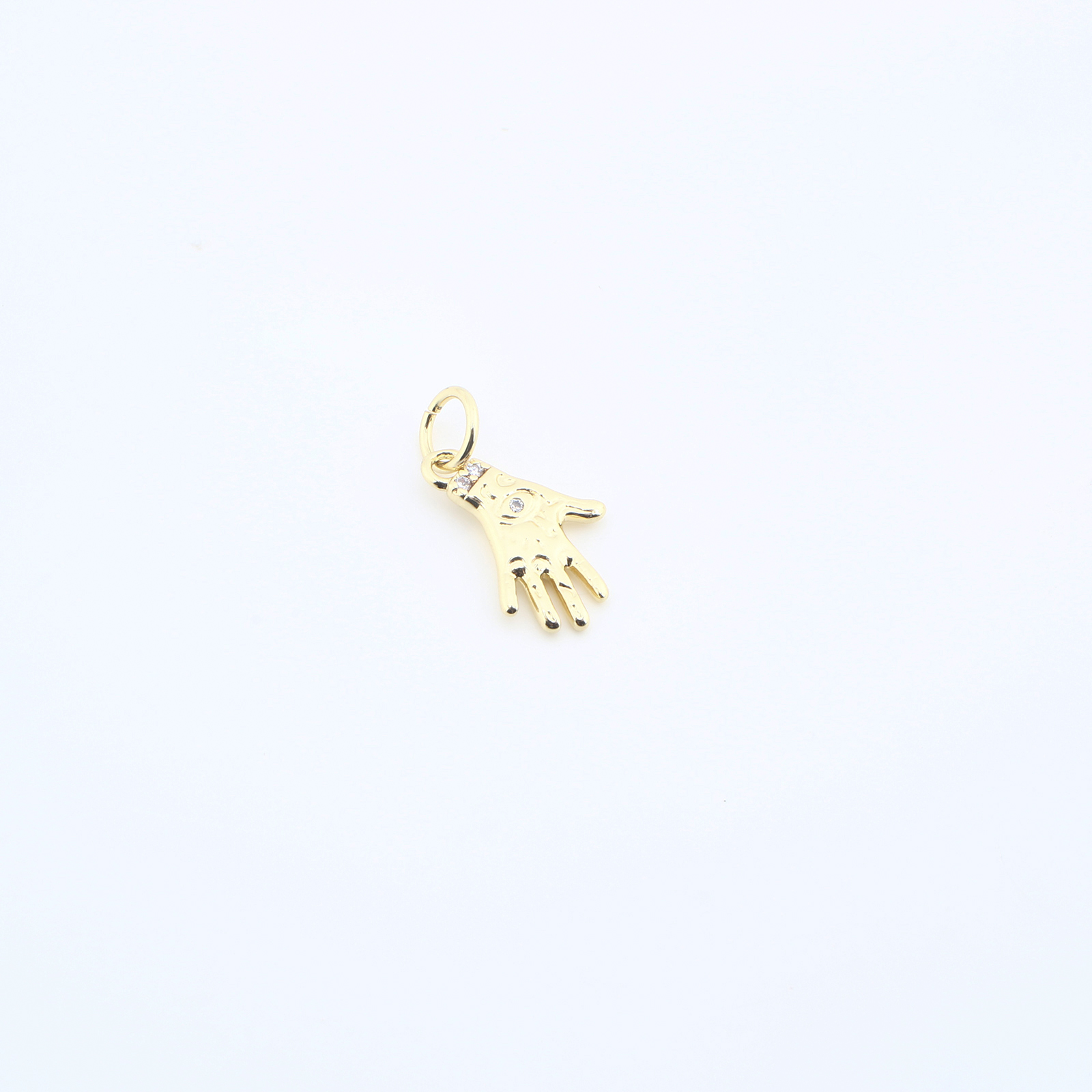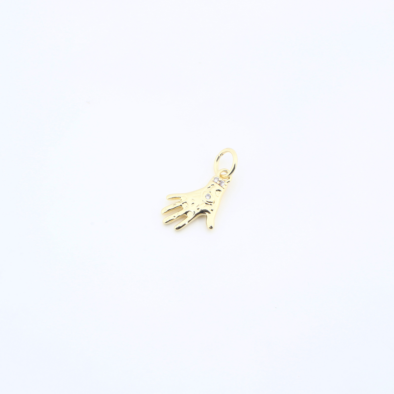 Cubic Zirconia Micro Pave Brass Pendant, Hand, plated, DIY & micro pave cubic zirconia, golden, nickel, lead & cadmium free, 13x8x1mm, Sold By PC