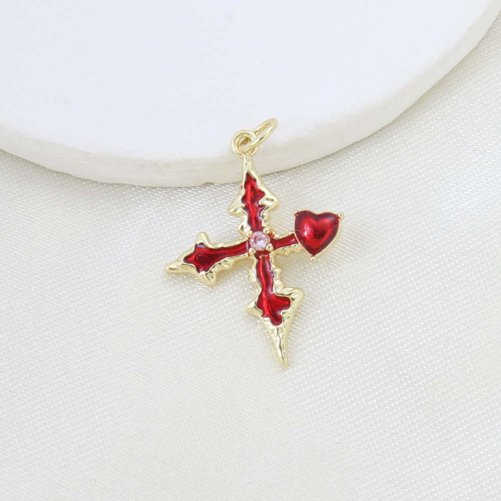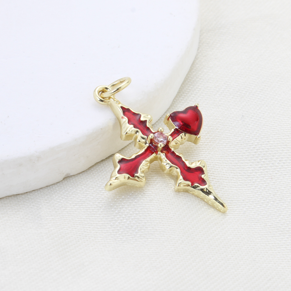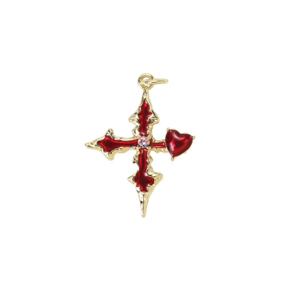 Cubic Zirconia Micro Pave Brass Pendant, Cross, plated, DIY & micro pave cubic zirconia & enamel, more colors for choice, nickel, lead & cadmium free, 25.40x19.70x3mm, Sold By PC