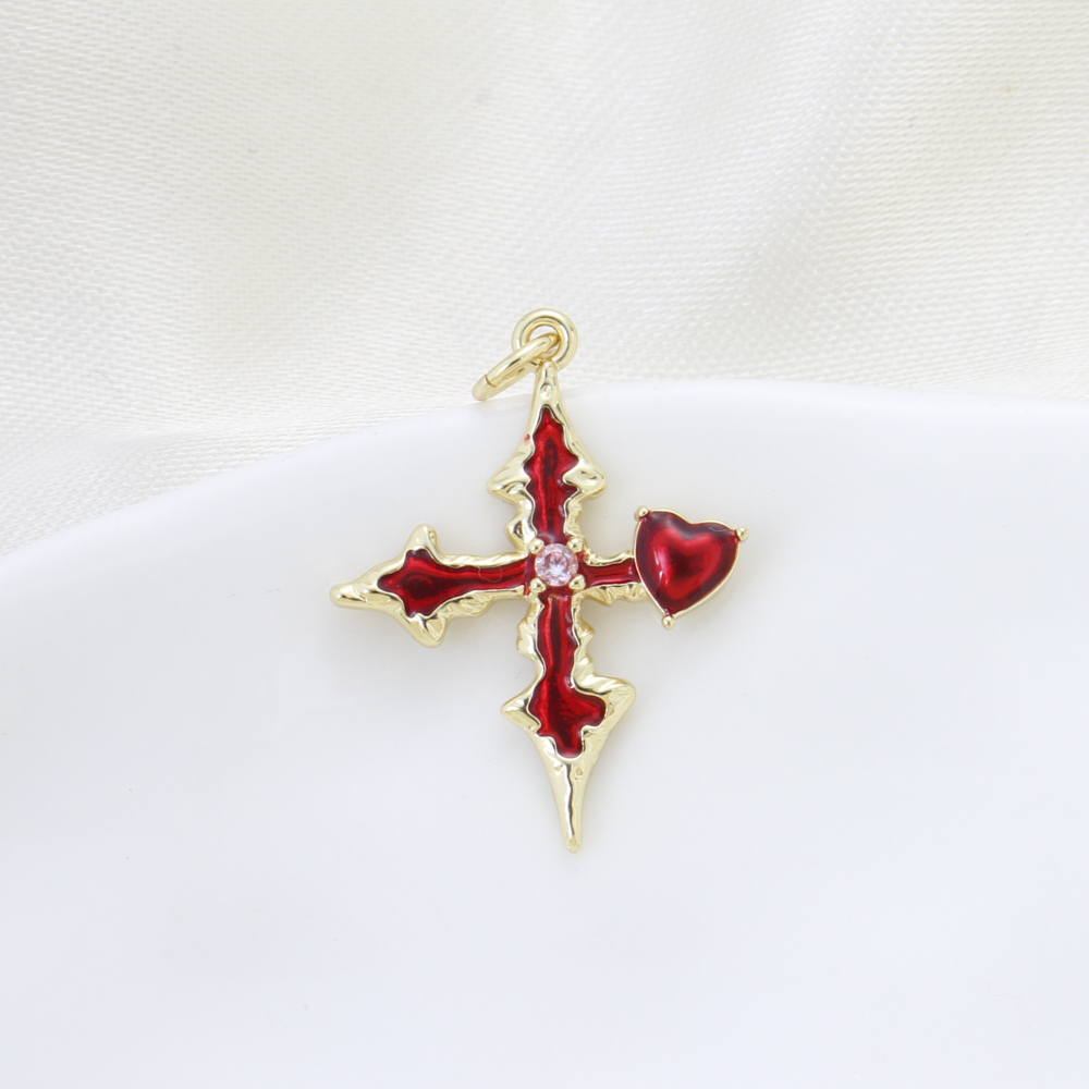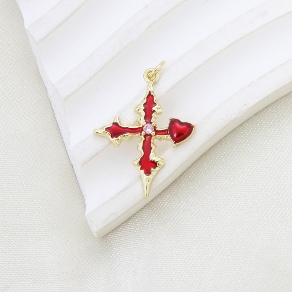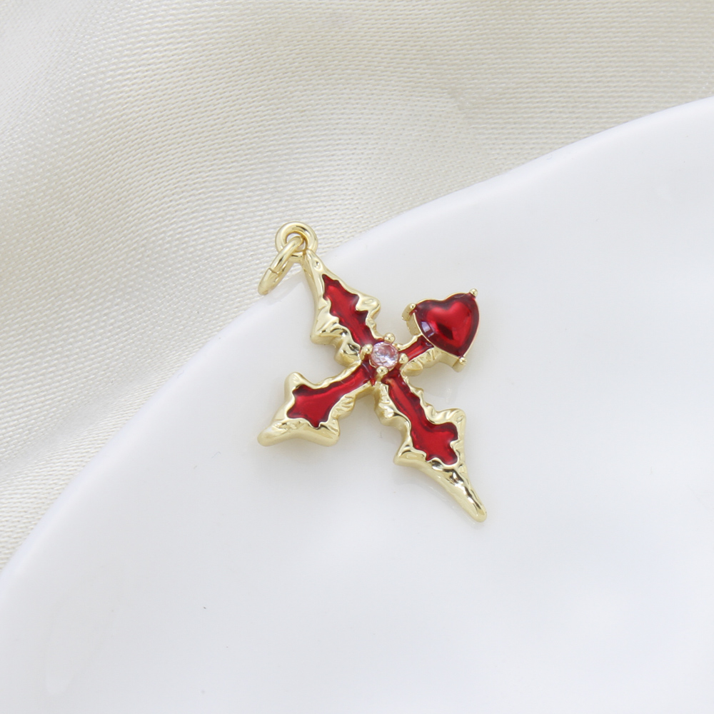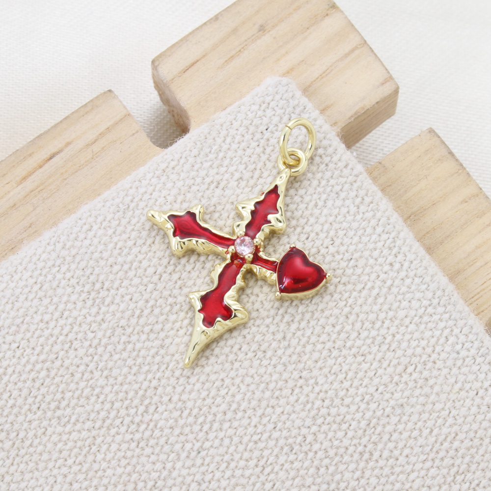 Cubic Zirconia Micro Pave Brass Pendant, Cross, plated, DIY & micro pave cubic zirconia & enamel, more colors for choice, nickel, lead & cadmium free, 25.40x19.70x3mm, Sold By PC