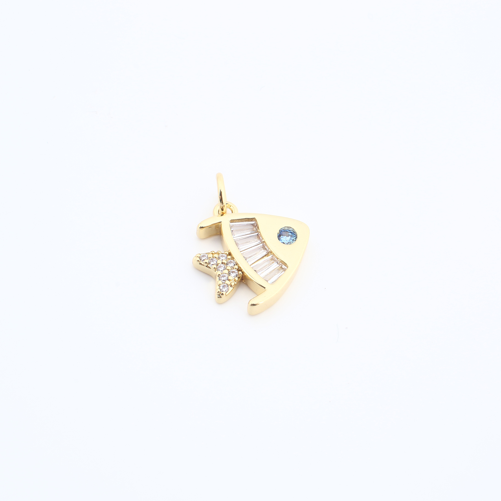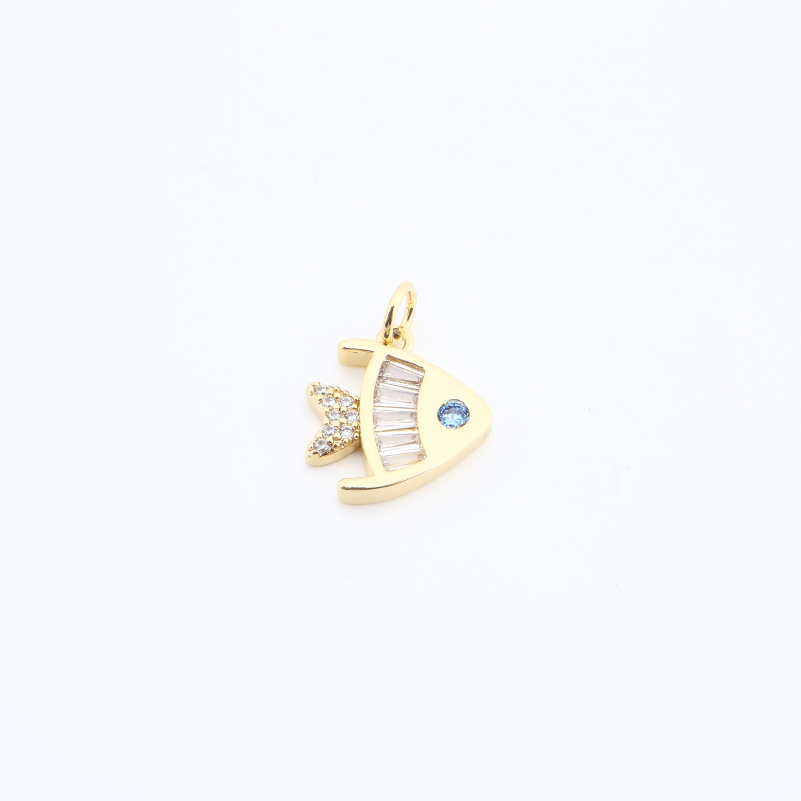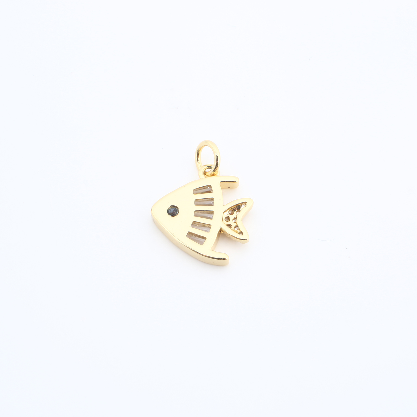Cubic Zirconia Micro Pave Brass Pendant, Fish, plated, DIY & micro pave cubic zirconia, more colors for choice, nickel, lead & cadmium free, 14x14x2mm, Sold By PC
