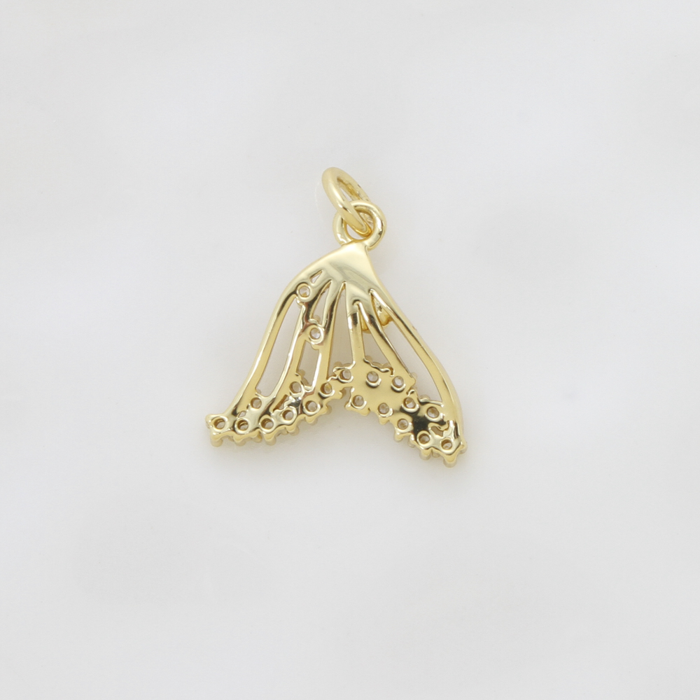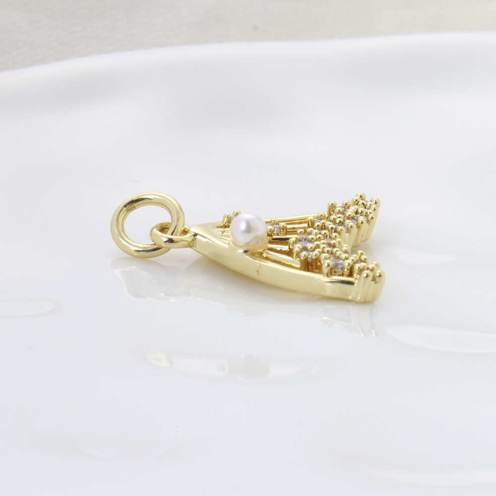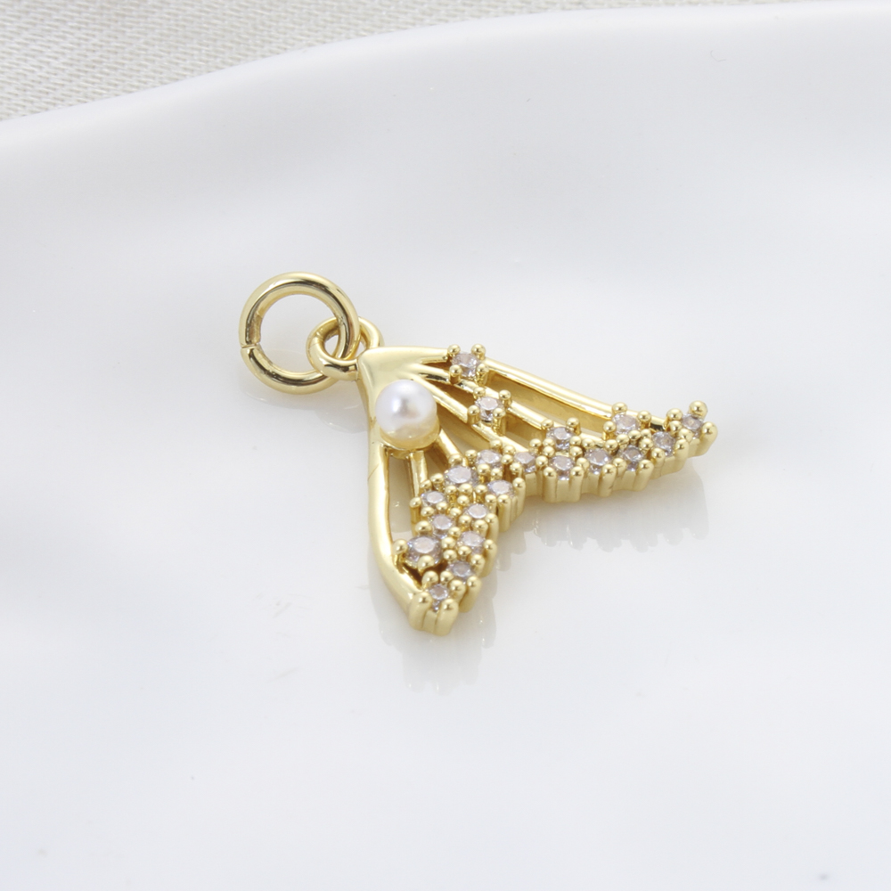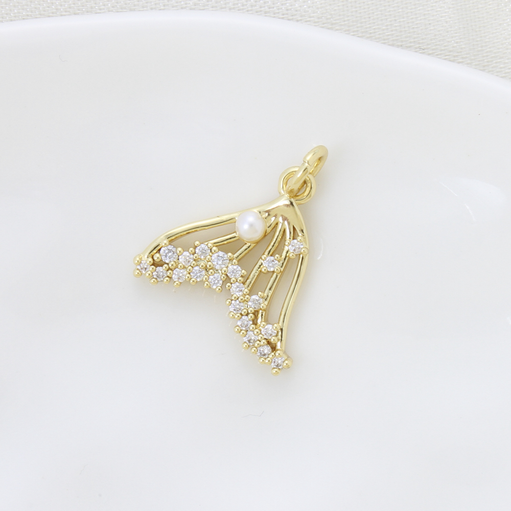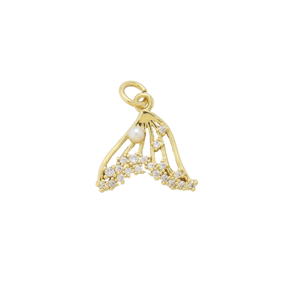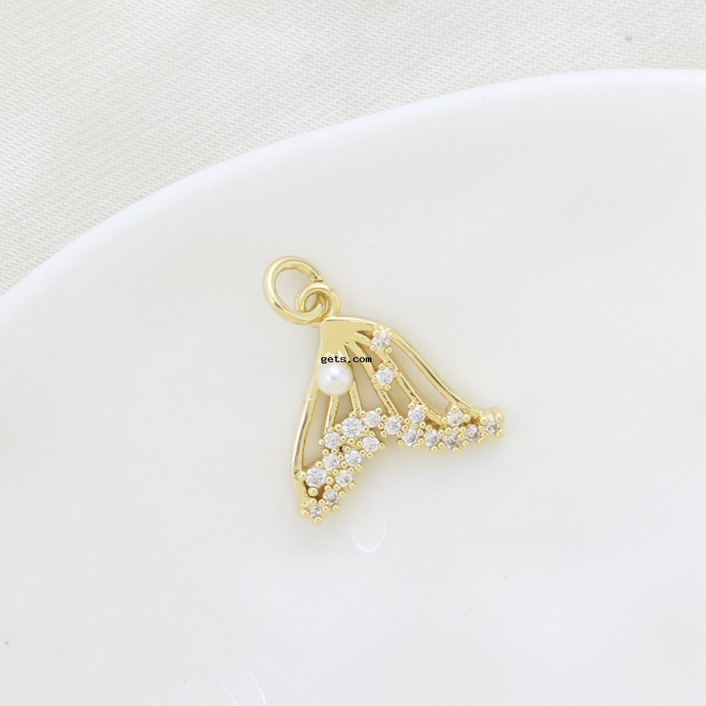 Cubic Zirconia Micro Pave Brass Pendant, with Plastic Pearl, Mermaid tail, plated, DIY & micro pave cubic zirconia, golden, nickel, lead & cadmium free, 15.50x16.30x3.70mm, Sold By PC