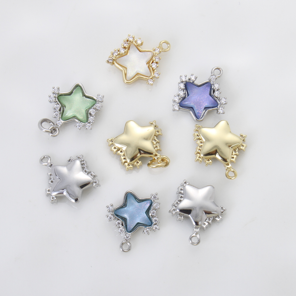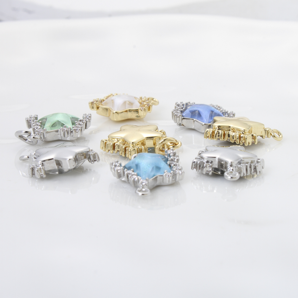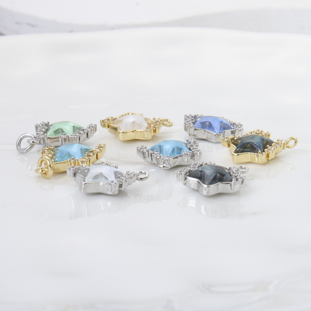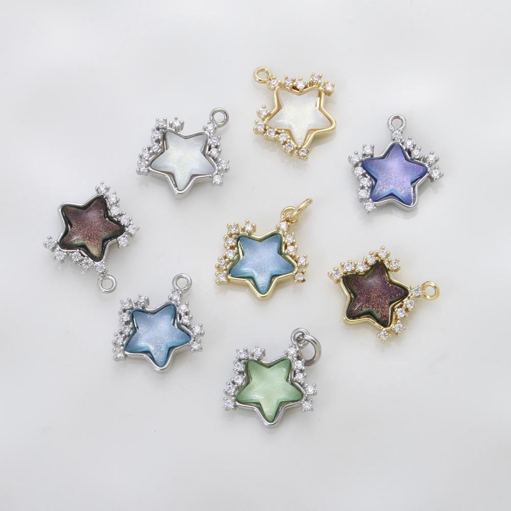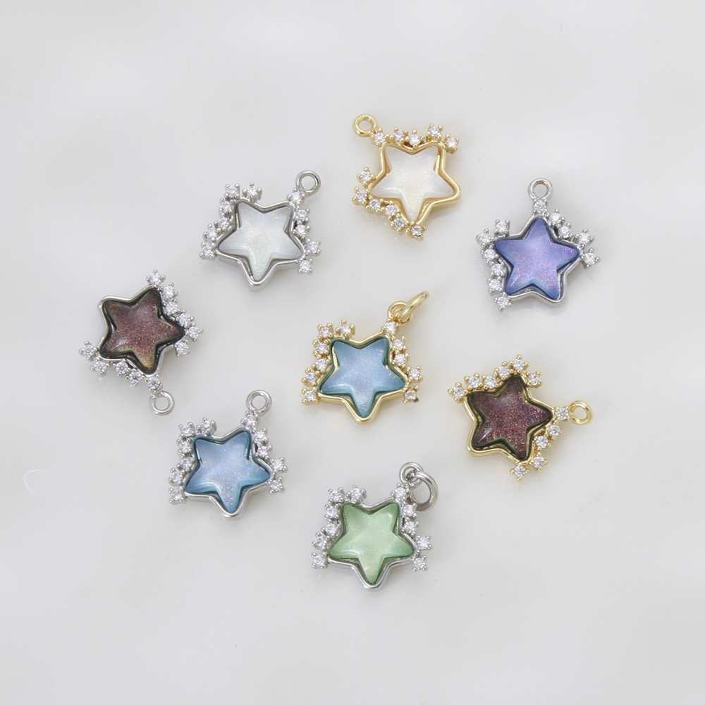Cubic Zirconia Micro Pave Brass Pendant, with Resin, Star, plated, DIY & micro pave cubic zirconia, more colors for choice, 12.50x11.80x3.90mm, Sold By PC