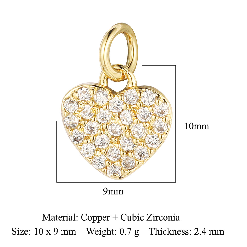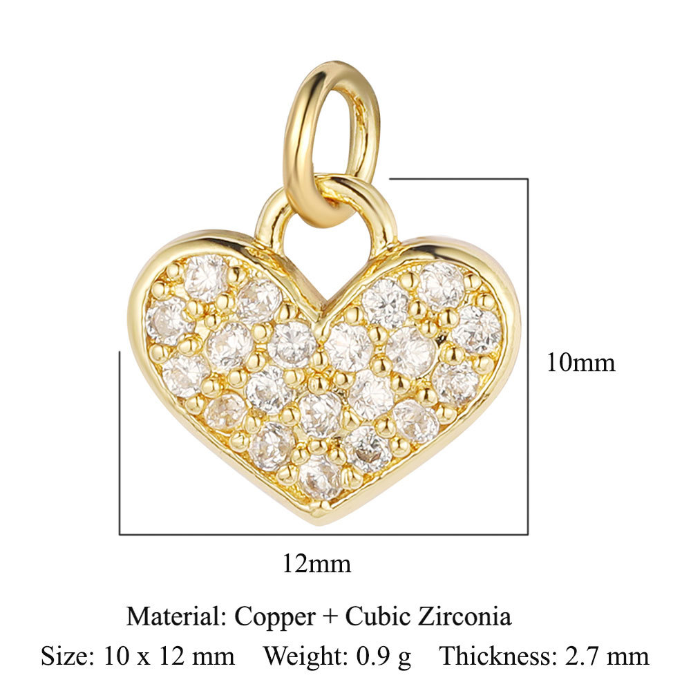 Cubic Zirconia Micro Pave Brass Pendant, Heart, gold color plated
