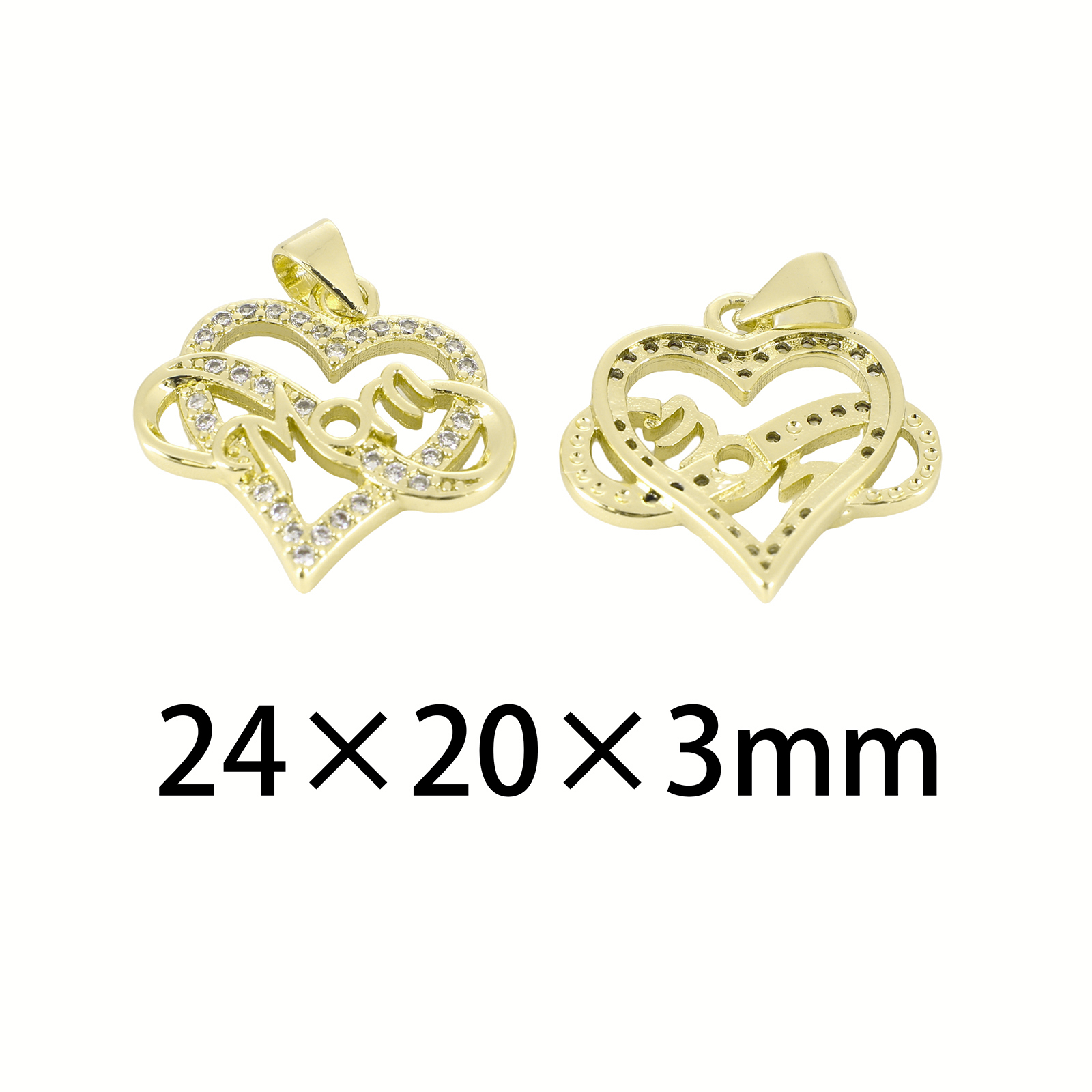 Cubic Zirconia Micro Pave Brass Pendant, Heart, gold color plated, DIY & with letter pattern & micro pave cubic zirconia, 24x20x3mm, Sold By PC