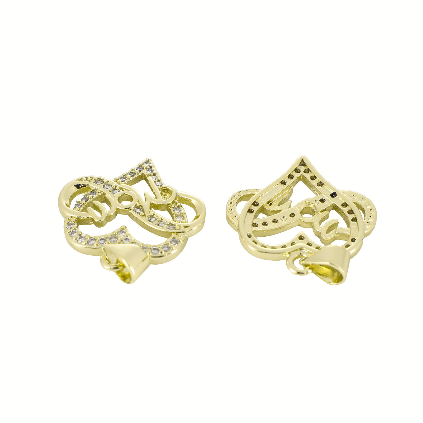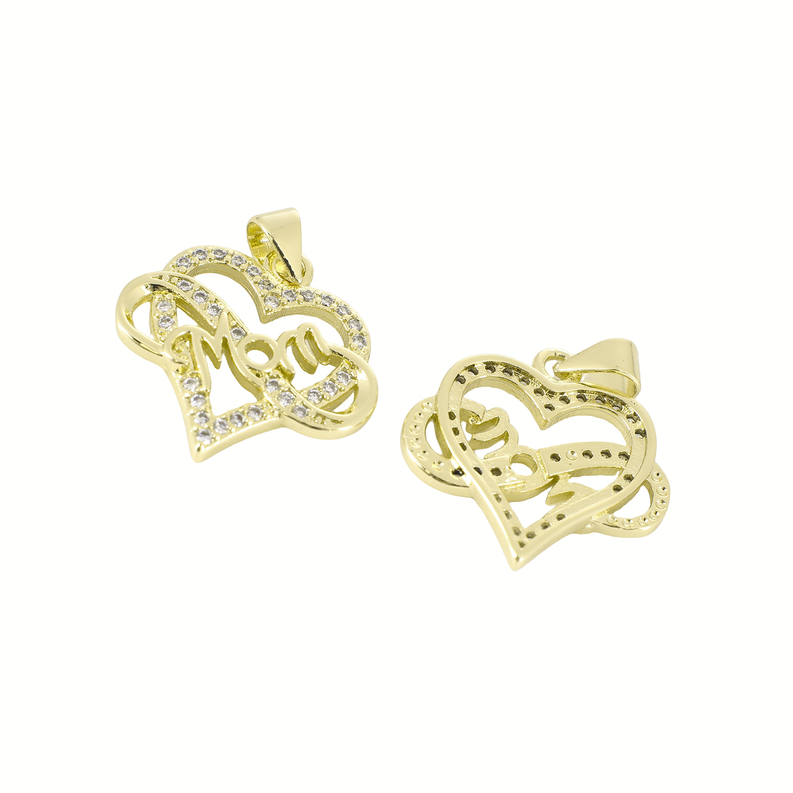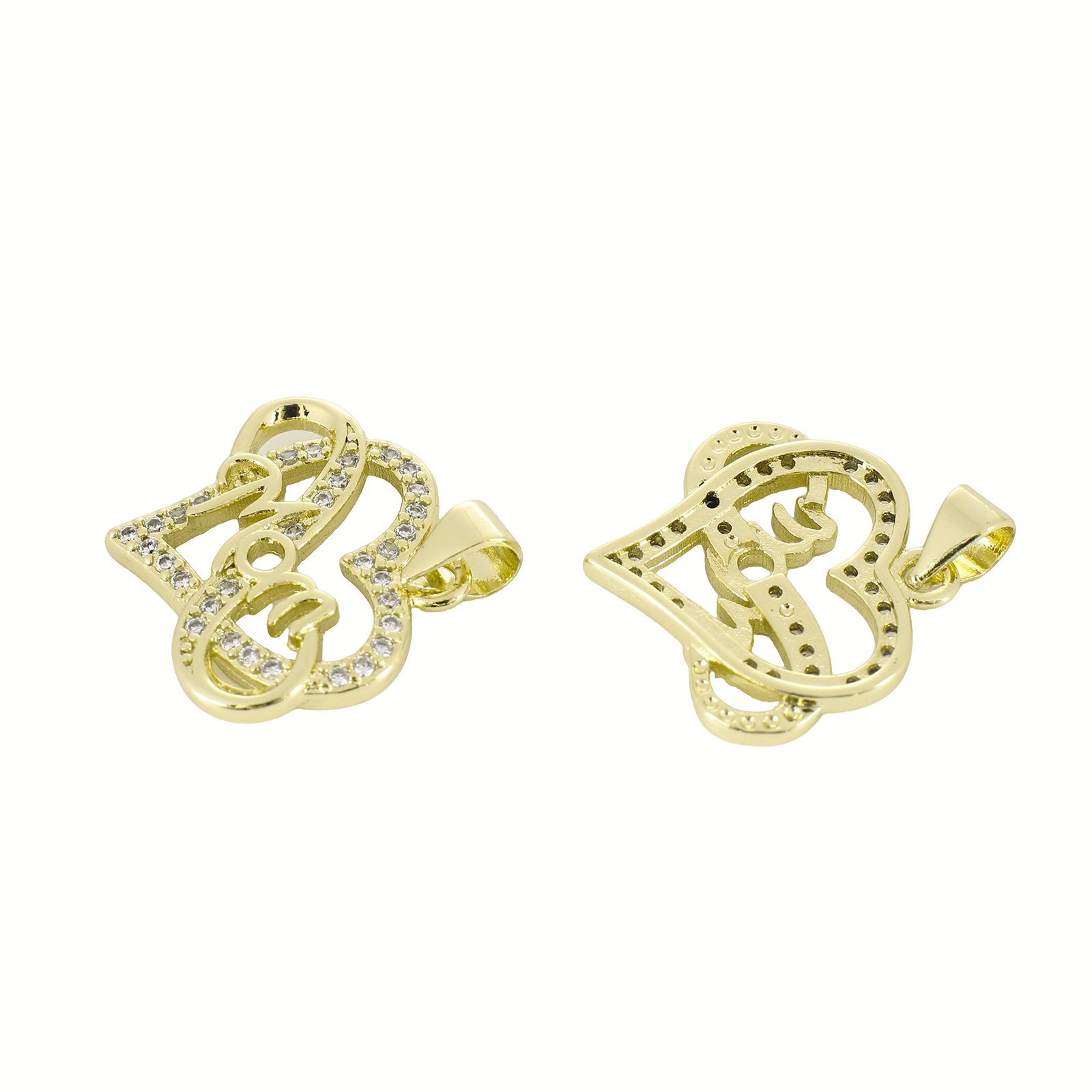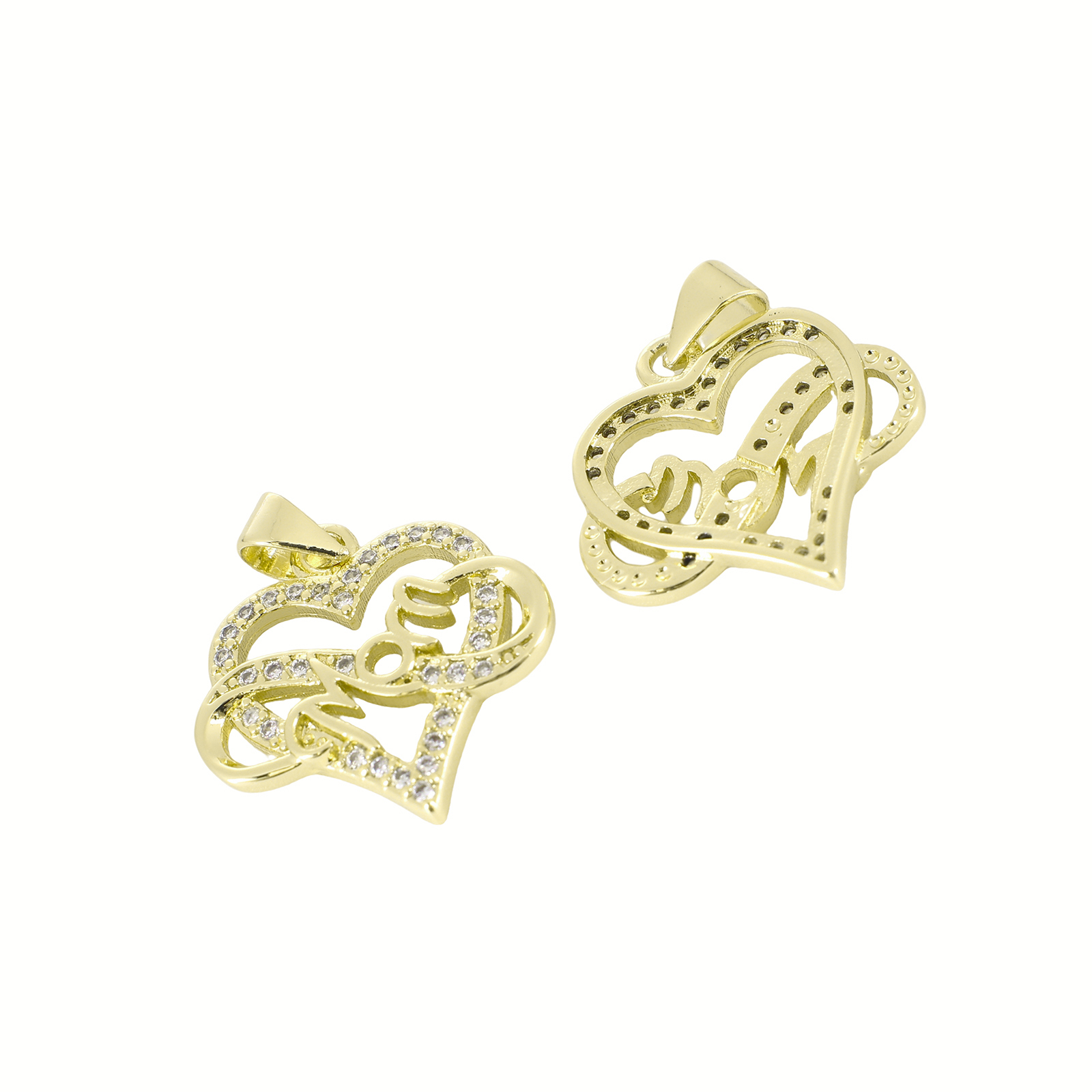Cubic Zirconia Micro Pave Brass Pendant, Heart, gold color plated