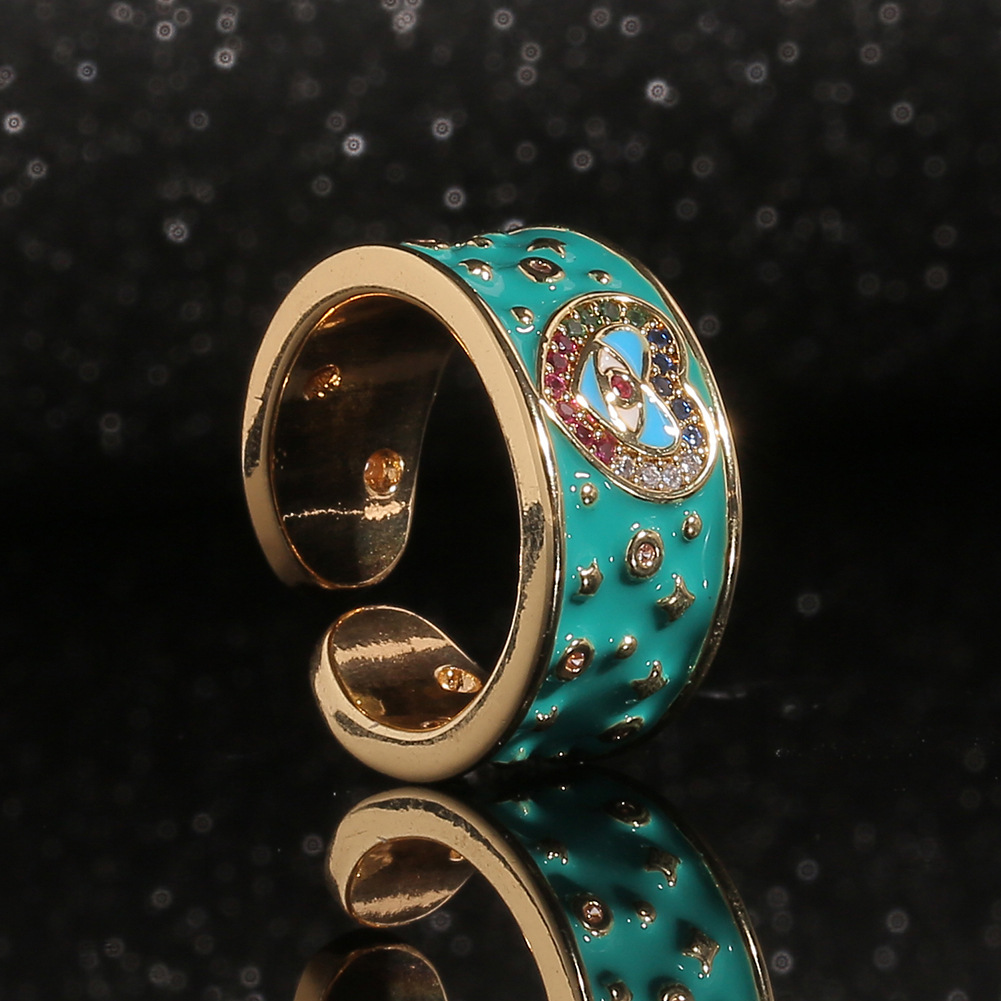 Brass Cuff Finger Ring, gold color plated, adjustable & micro pave cubic zirconia & for woman & enamel, more colors for choice, 21mm, Sold By PC
