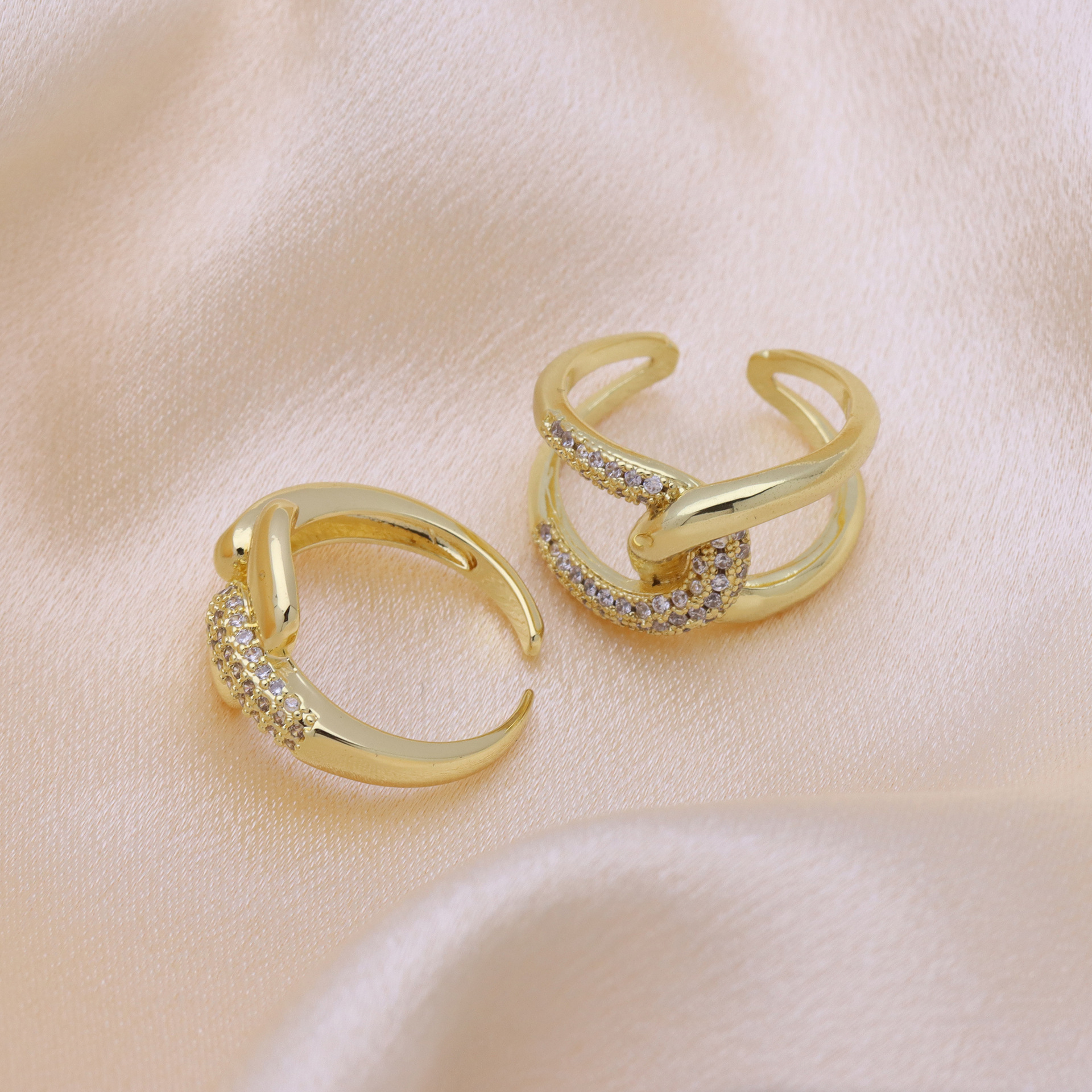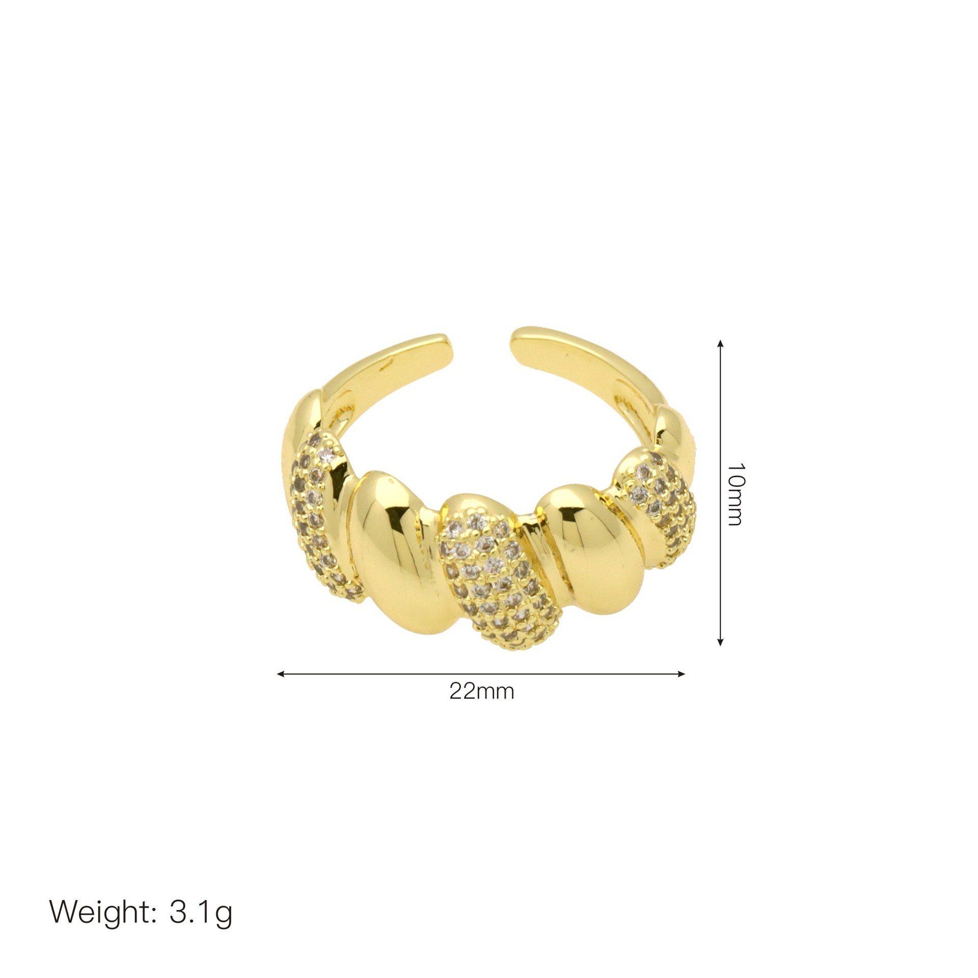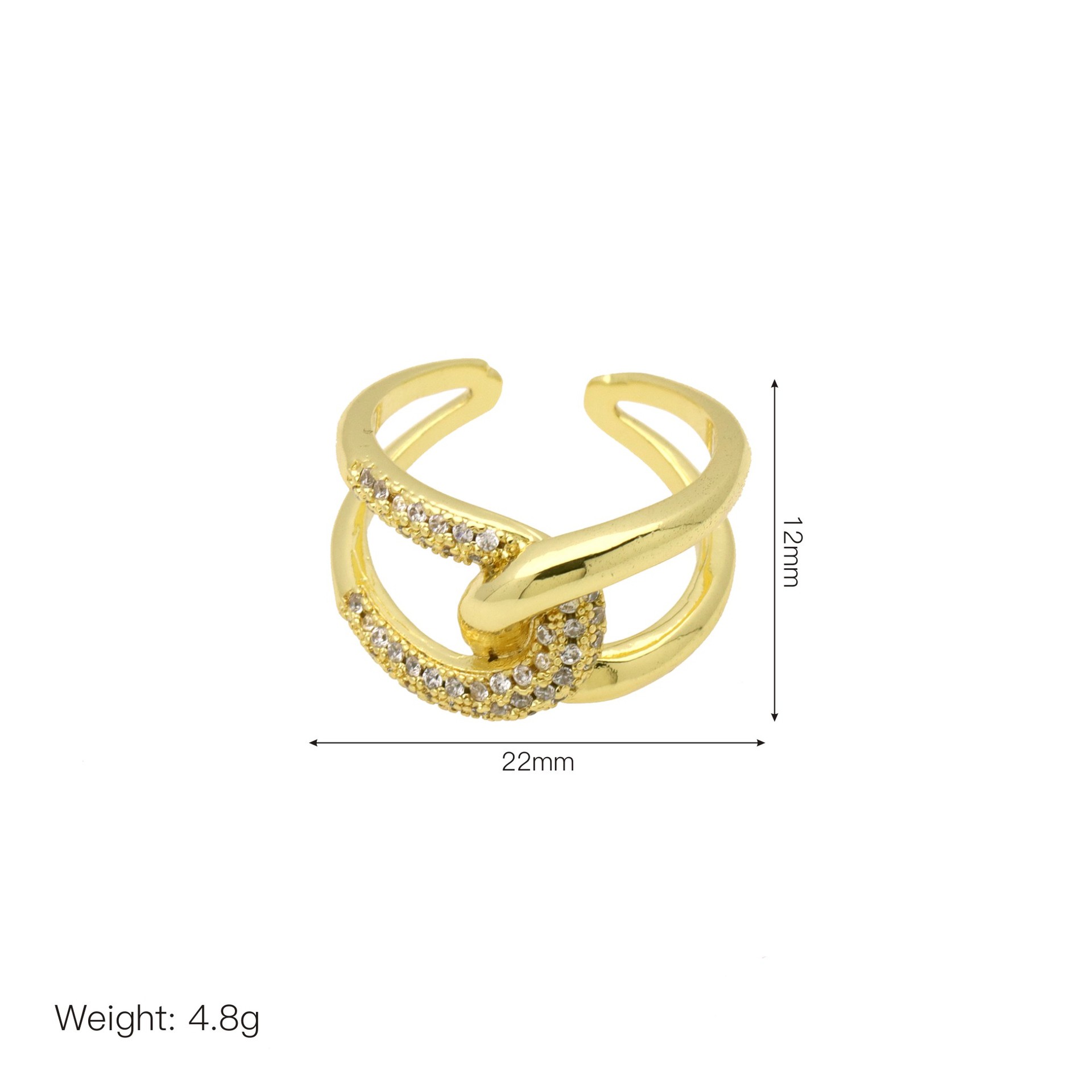 - Brass Open Finger Ring, gold color plated, Adjustable & micro pave cubic zirconia & enamel