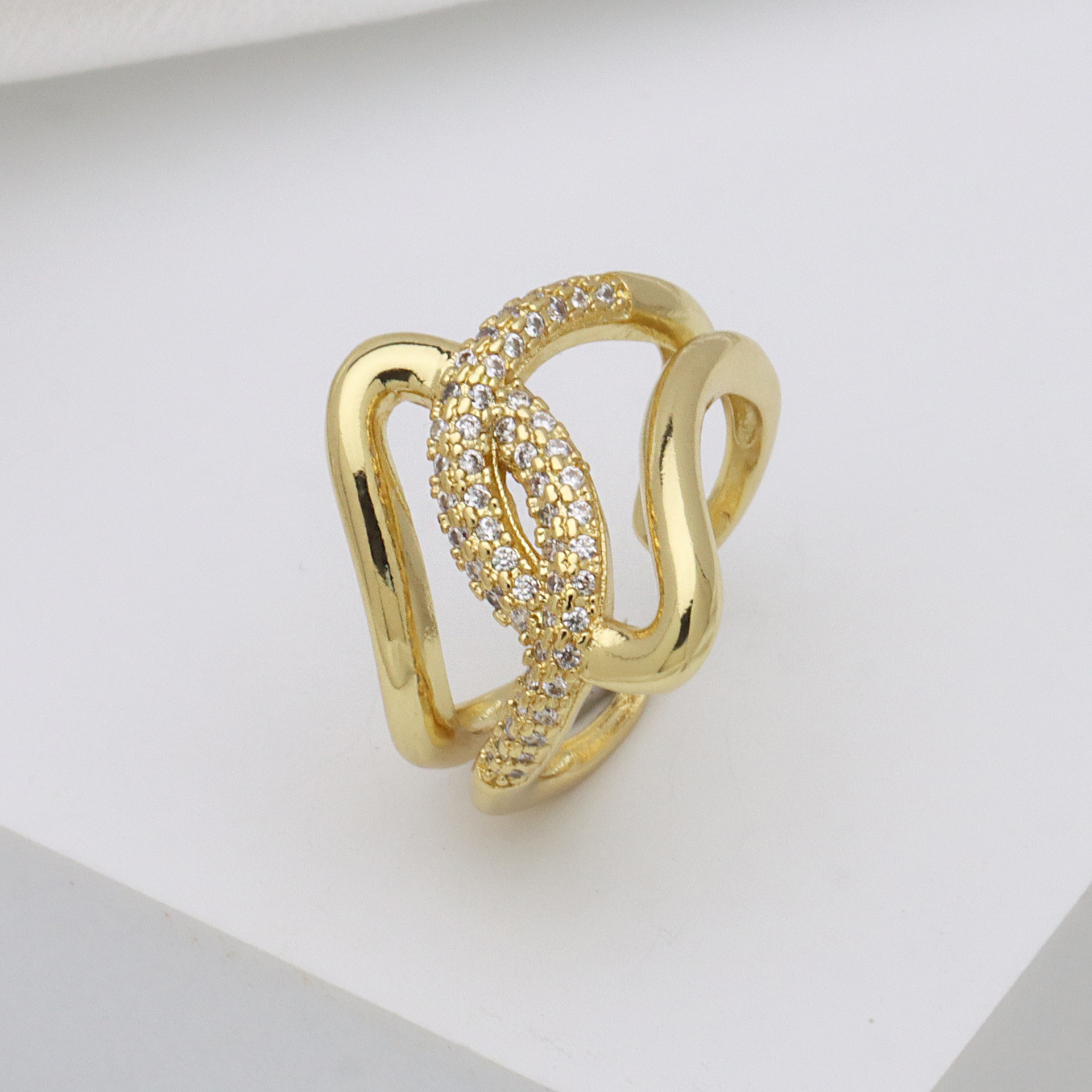 - Cubic Zirconia Micro Pave Brass Ring, fashion jewelry & micro pave cubic zirconia & for woman, golden