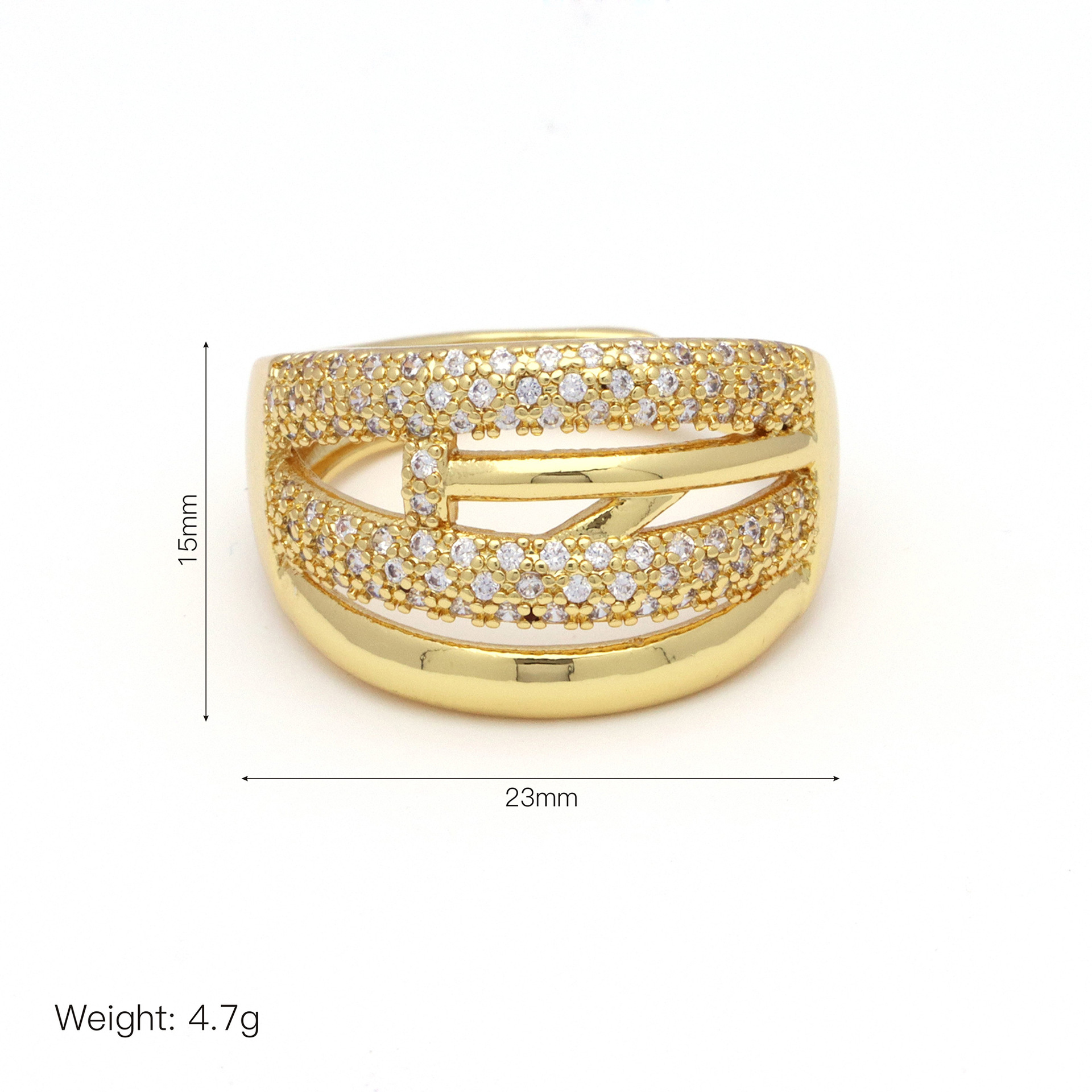 Cubic Zirconia Micro Pave Brass Ring, gold color plated, fashion jewelry & different designs for choice & micro pave cubic zirconia, golden, nickel, lead & cadmium free, Ring diameter: 1.7cm, Sold By PC