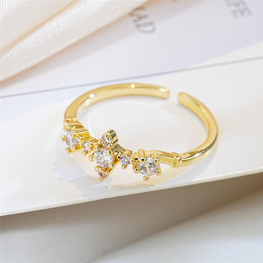Brass Cuff Finger Ring, 18K gold plated, Adjustable & micro pave cubic zirconia & for woman & hollow