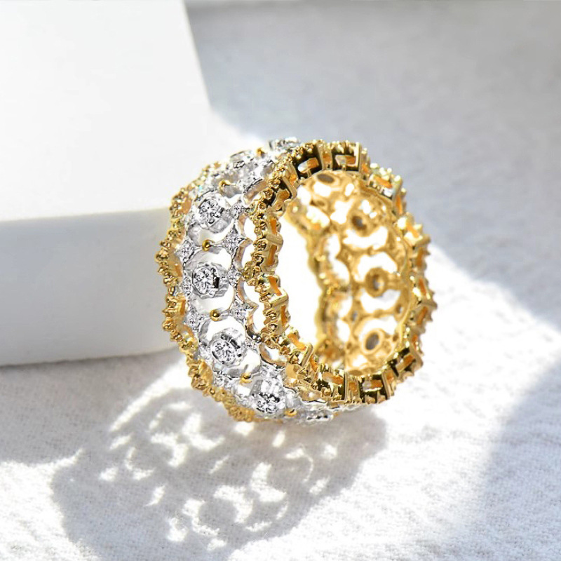 Cubic Zirconia Micro Pave Brass Ring, plated, different size for choice & micro pave cubic zirconia & for woman & two tone & hollow, Sold By PC