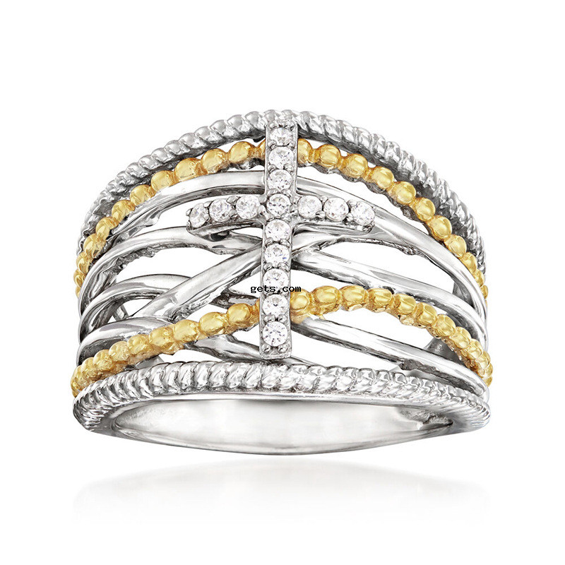 Cubic Zirconia Micro Pave Brass Ring, plated, multilayer & different size for choice & micro pave cubic zirconia & for woman & two tone, Sold By PC