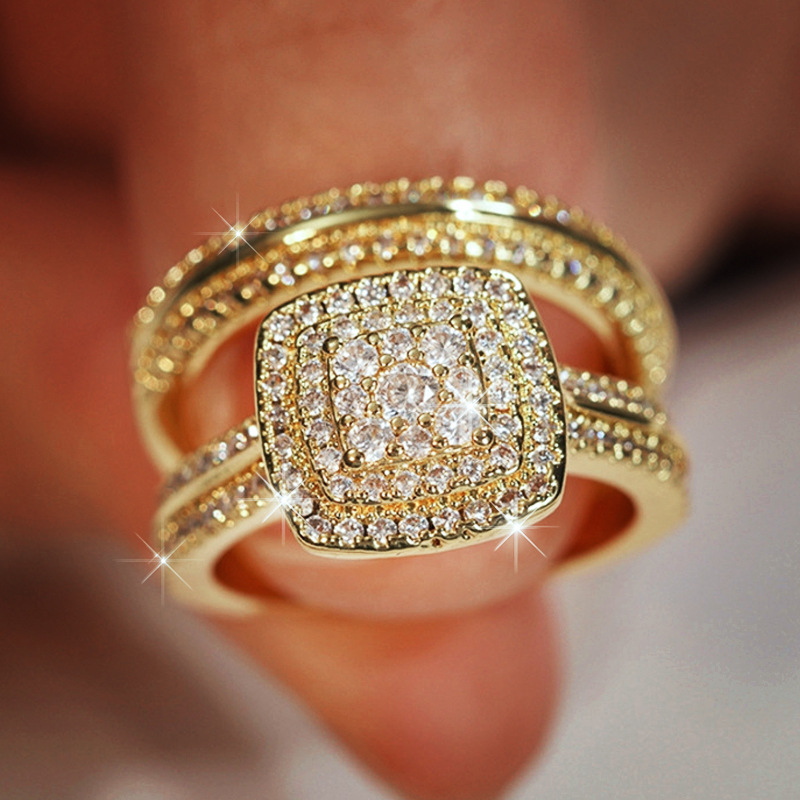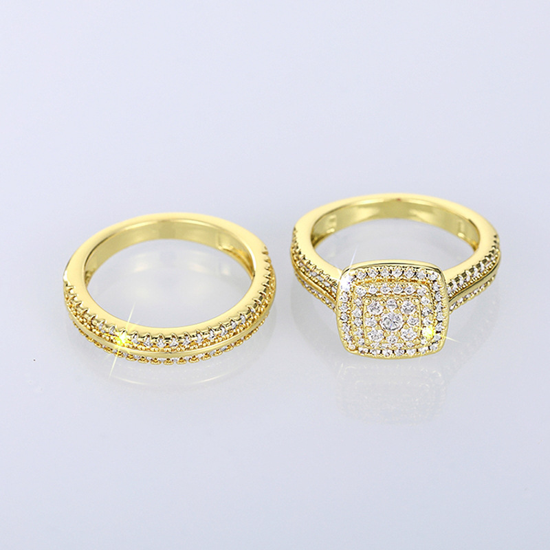Cubic Zirconia Micro Pave Brass Ring, plated, 2 pieces & different size for choice & micro pave cubic zirconia & for woman, Sold By Set
