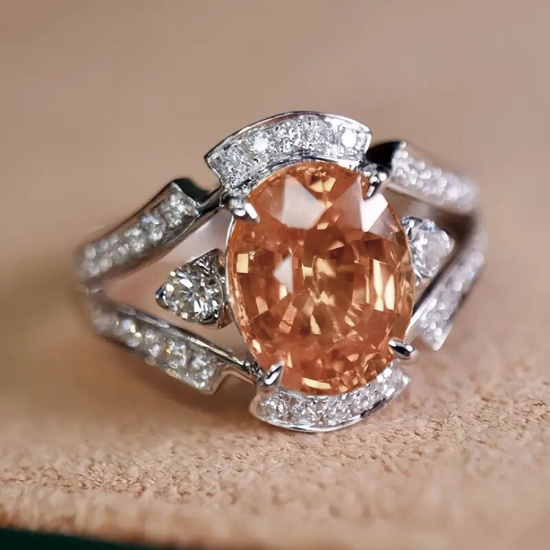 - Cubic Zirconia Micro Pave Brass Ring, Oval, plated