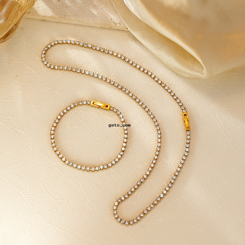 - Cubic Zirconia Stainless Steel Jewelry Sets, bracelet & necklace, 304 Stainless Steel