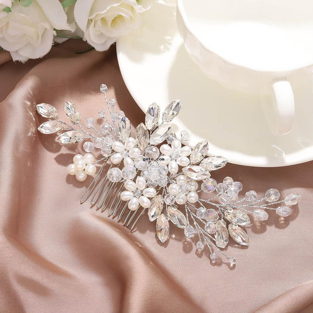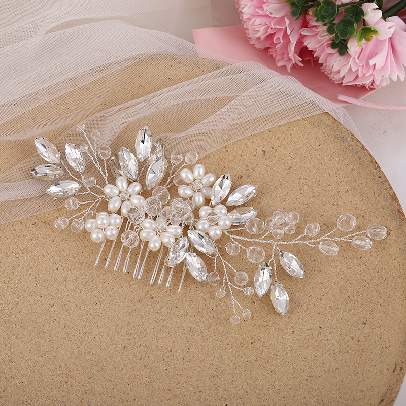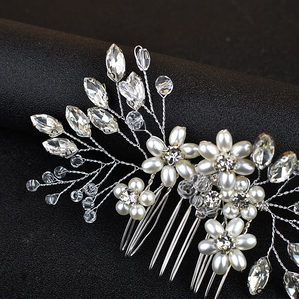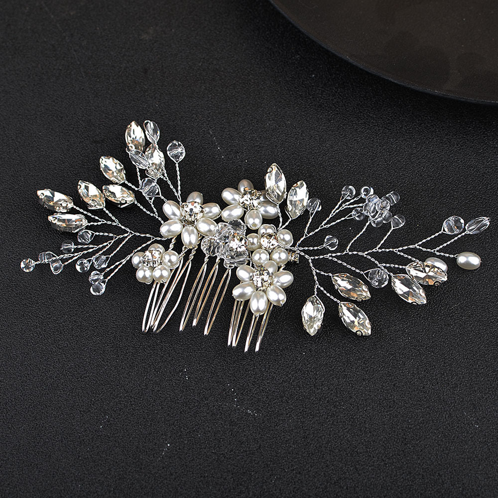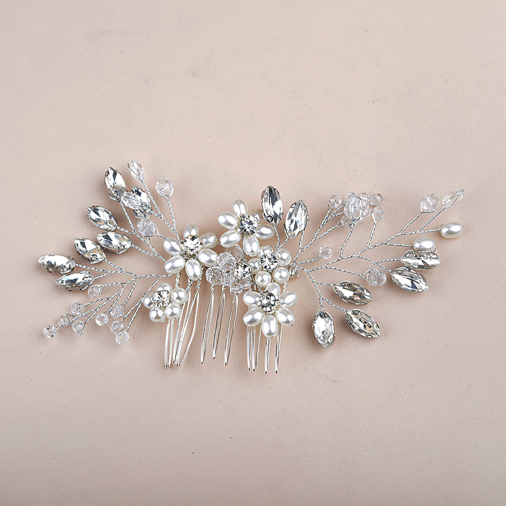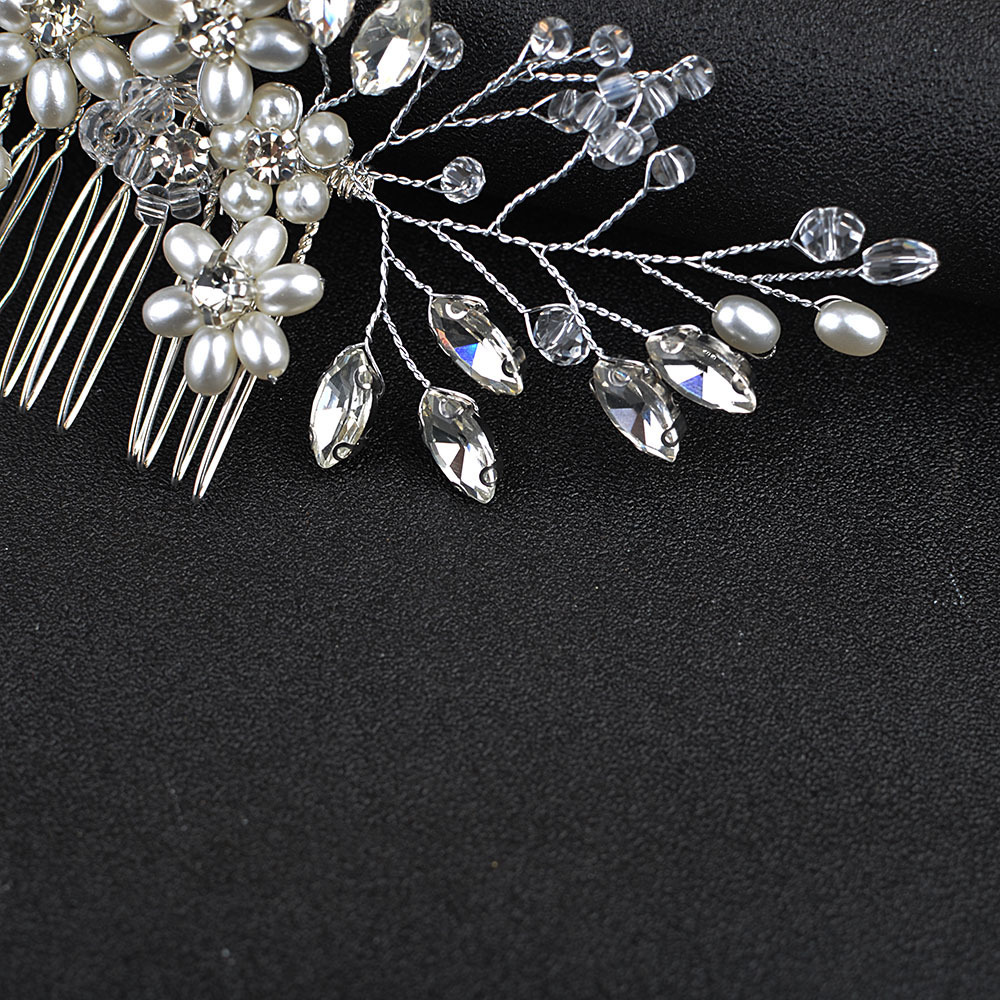 Decorative Hair Combs, Plastic Pearl, with brass wire & Rhinestone, handmade, fashion jewelry & for woman, silver color, 150x65mm, Sold By PC