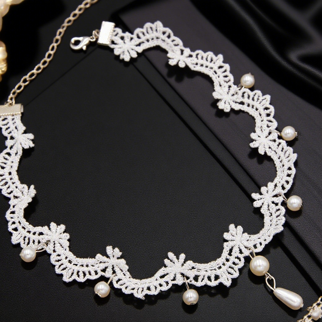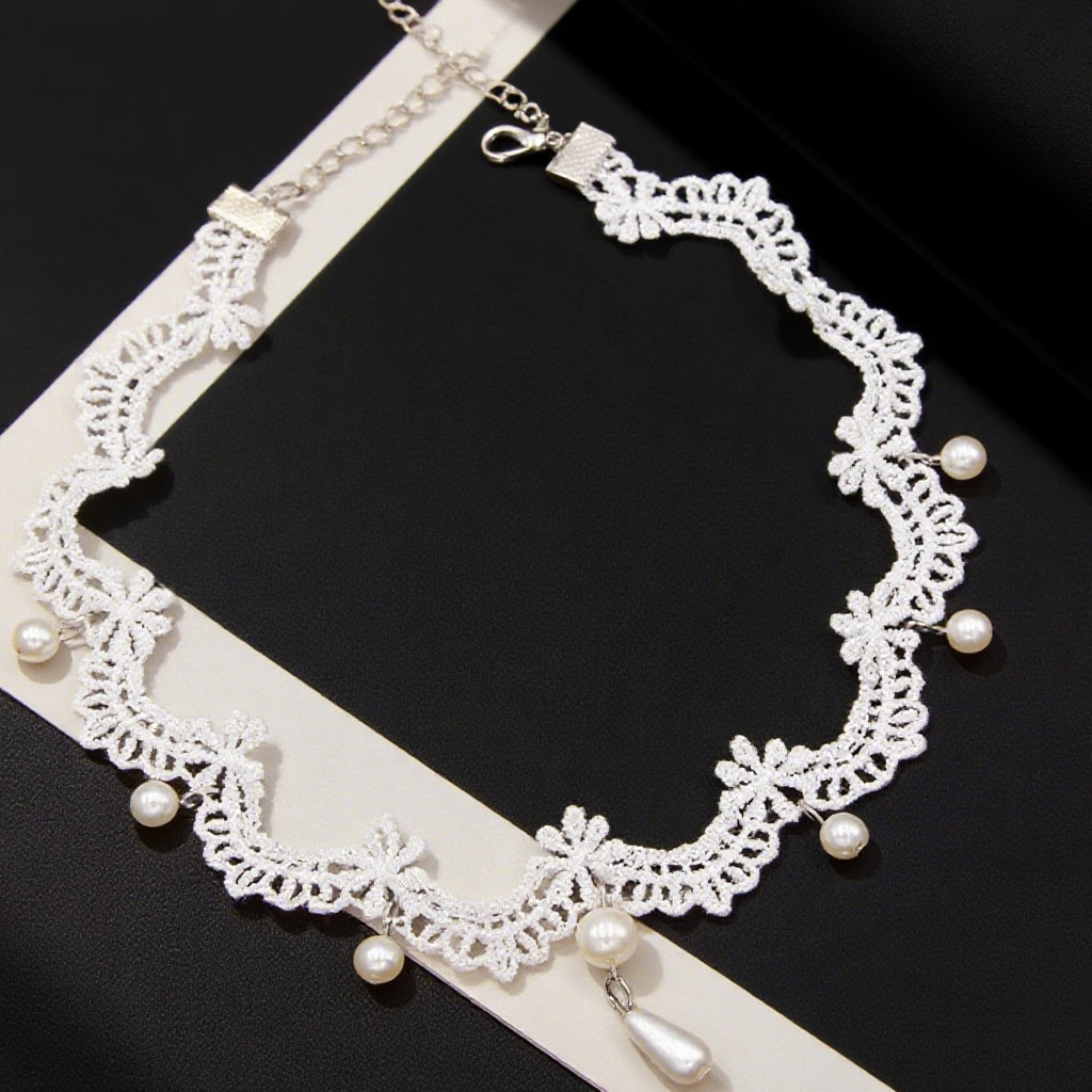 Embroidery Choker, Lace, with Plastic Pearl & Tibetan Style, handmade, fashion jewelry & for woman, white, Length:Approx 45 cm, Sold By PC