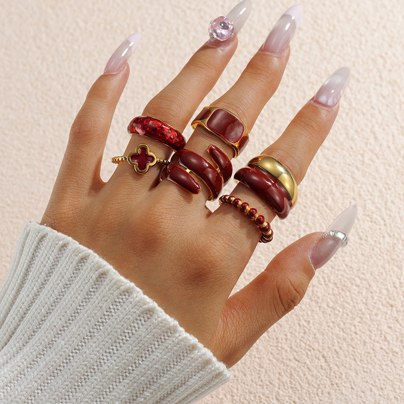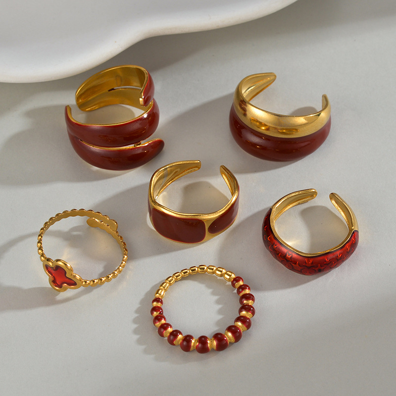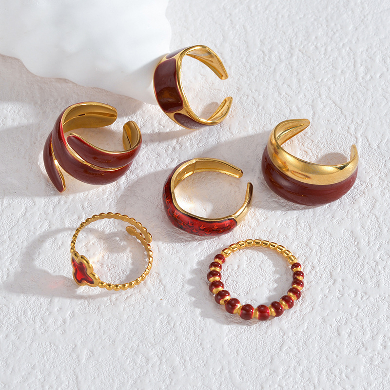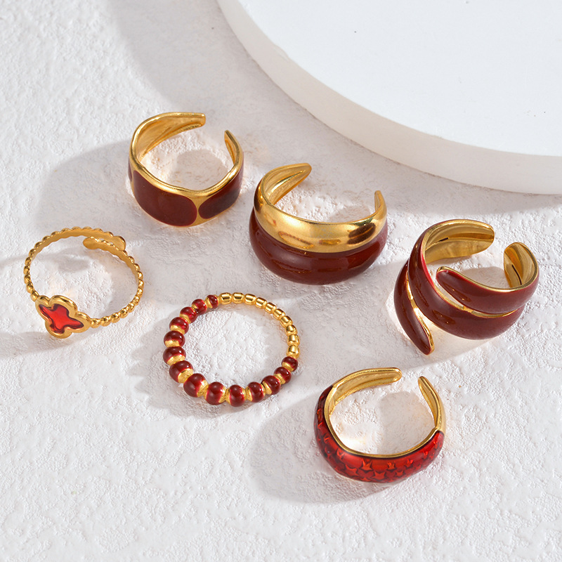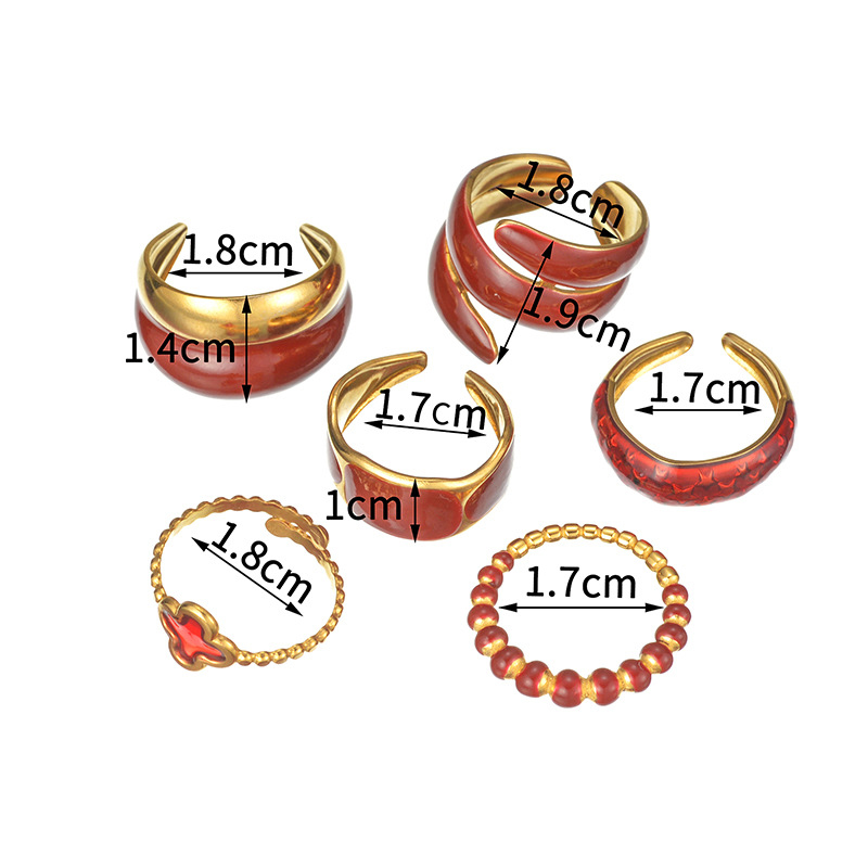 Enamel Stainless Steel Finger Ring, 304 Stainless Steel, gold color plated, different styles for choice & for woman, red, Sold By PC