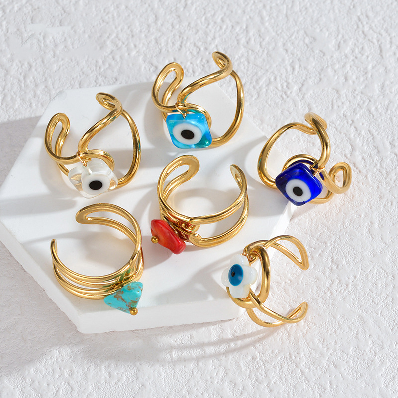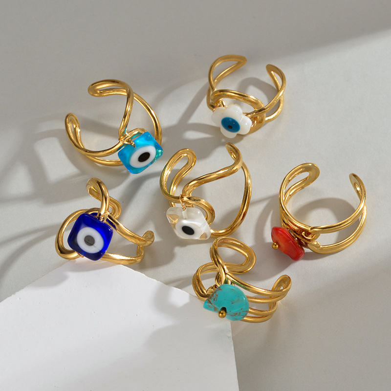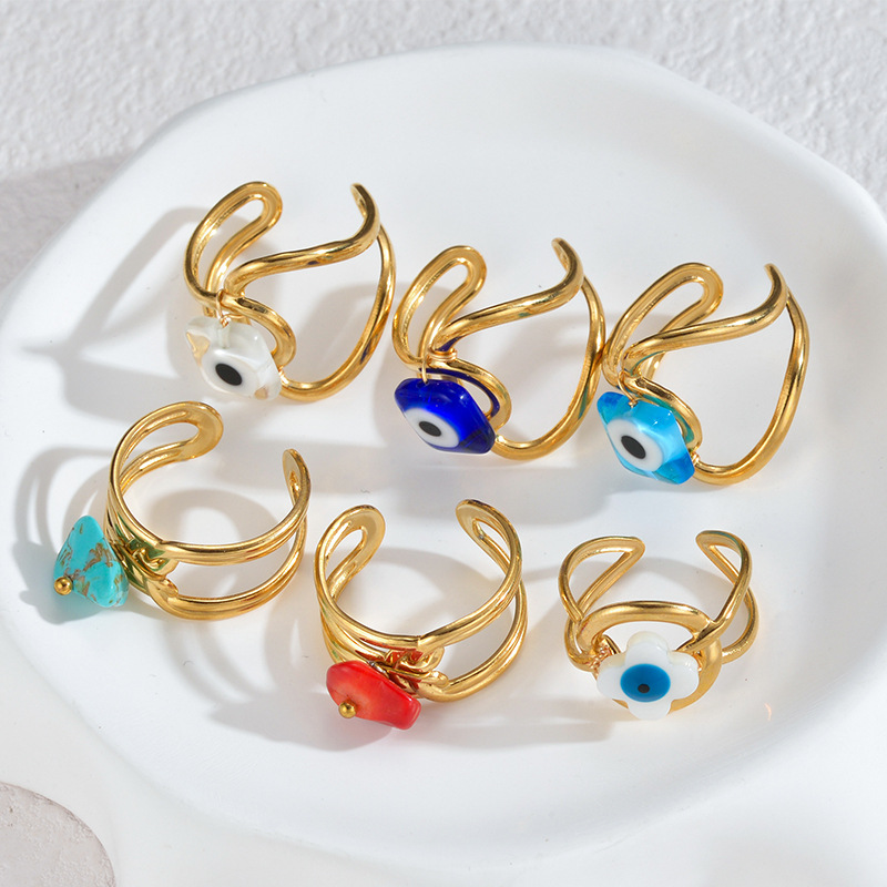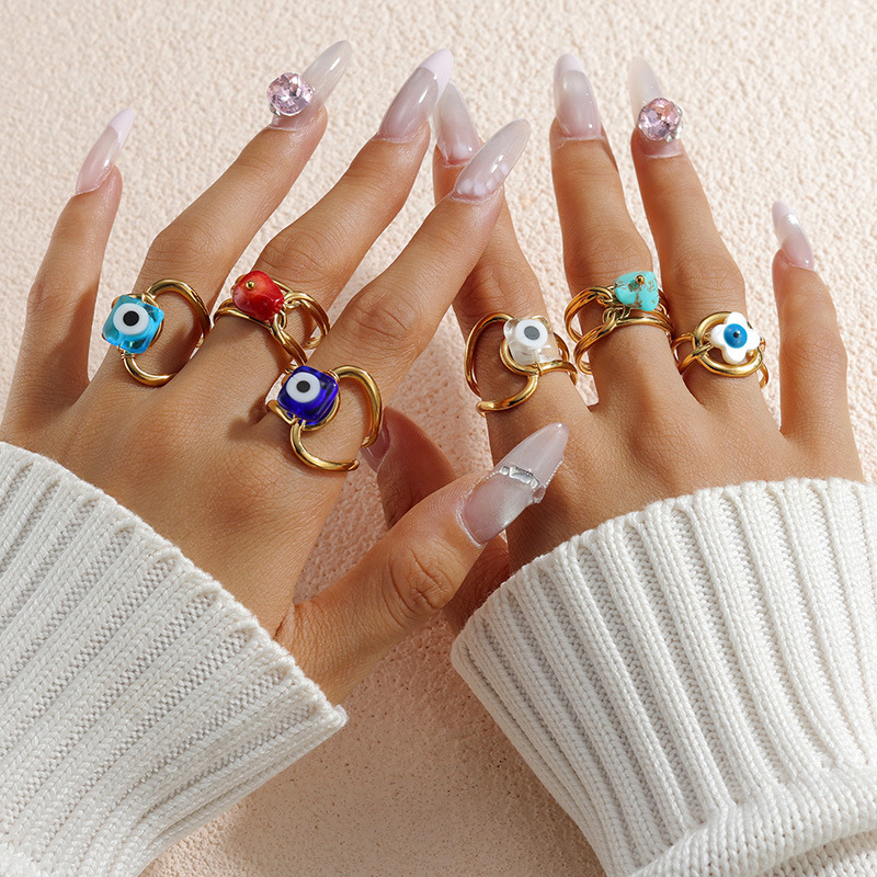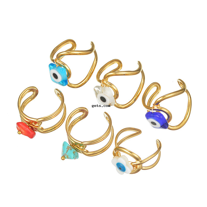 - Evil Eye Jewelry Finger Ring, Brass, with Acrylic