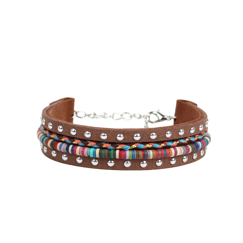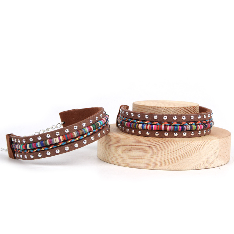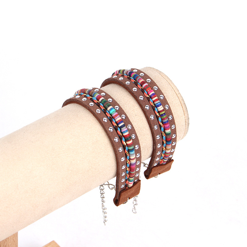 Fashion Bracelet & Bangle Jewelry, Tibetan Style, with Velveteen & Polymer Clay & Iron, gold color plated, fashion jewelry, more colors for choice, 10x10mm, Sold By PC