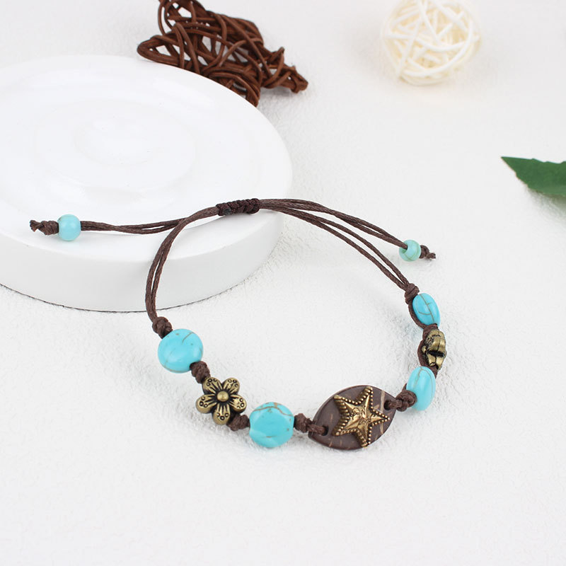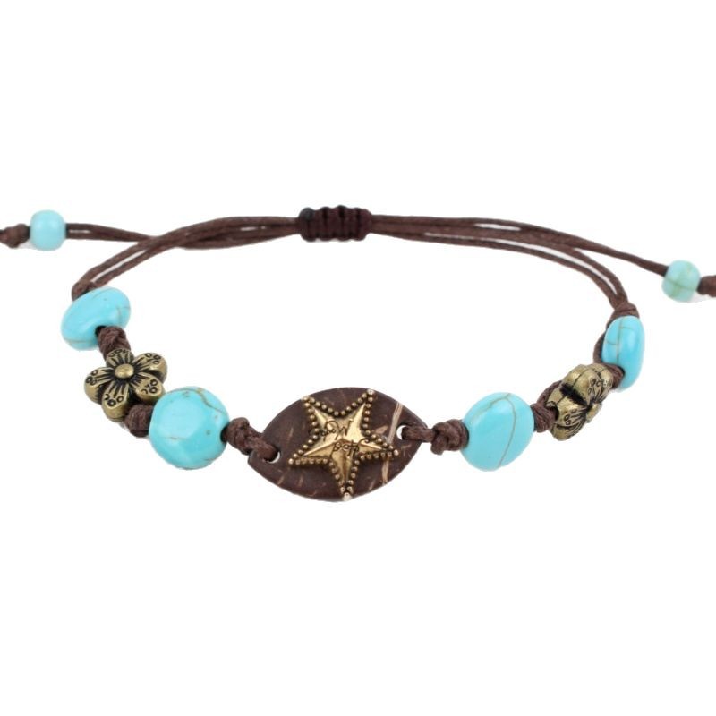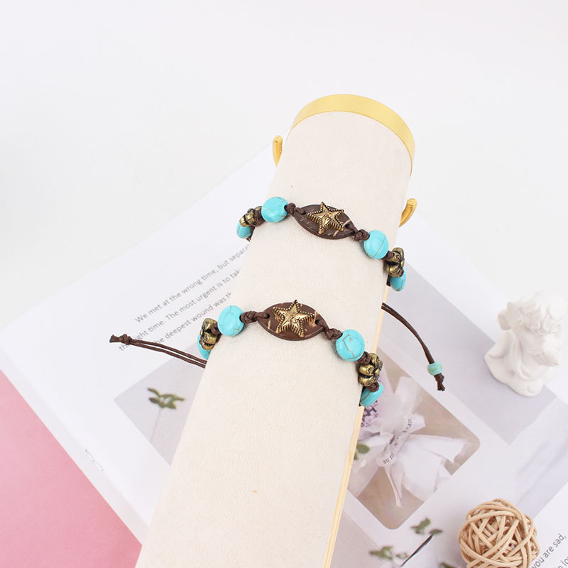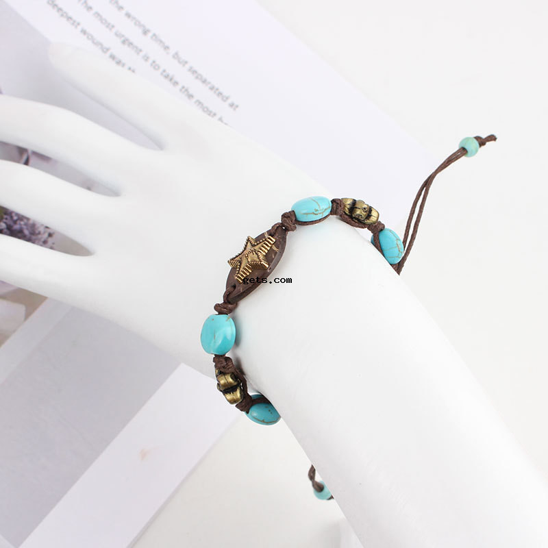Fashion Bracelet & Bangle Jewelry, Tibetan Style, with Coco & Wax Cord & Natural Turquoise, gold color plated, fashion jewelry, more colors for choice, Sold By PC
