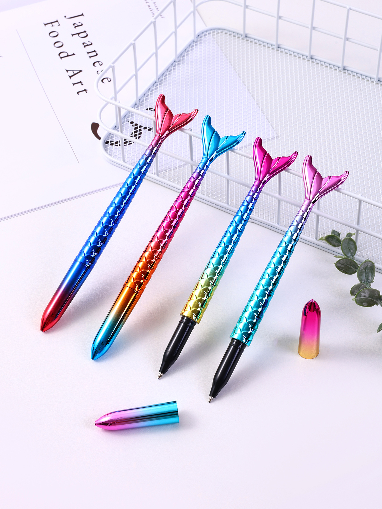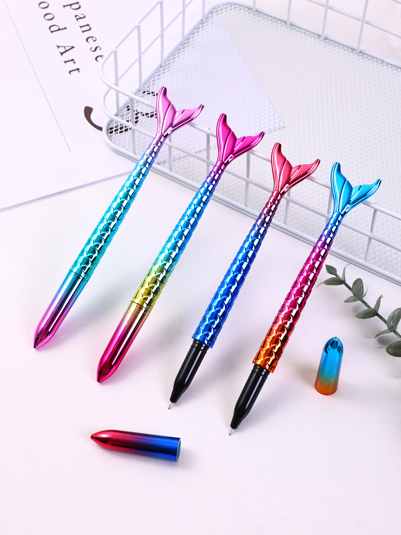 Plastic Gel Pen, Mermaid tail, Laser & different styles for choice, more colors for choice, 170x30x15mm, Sold By PC