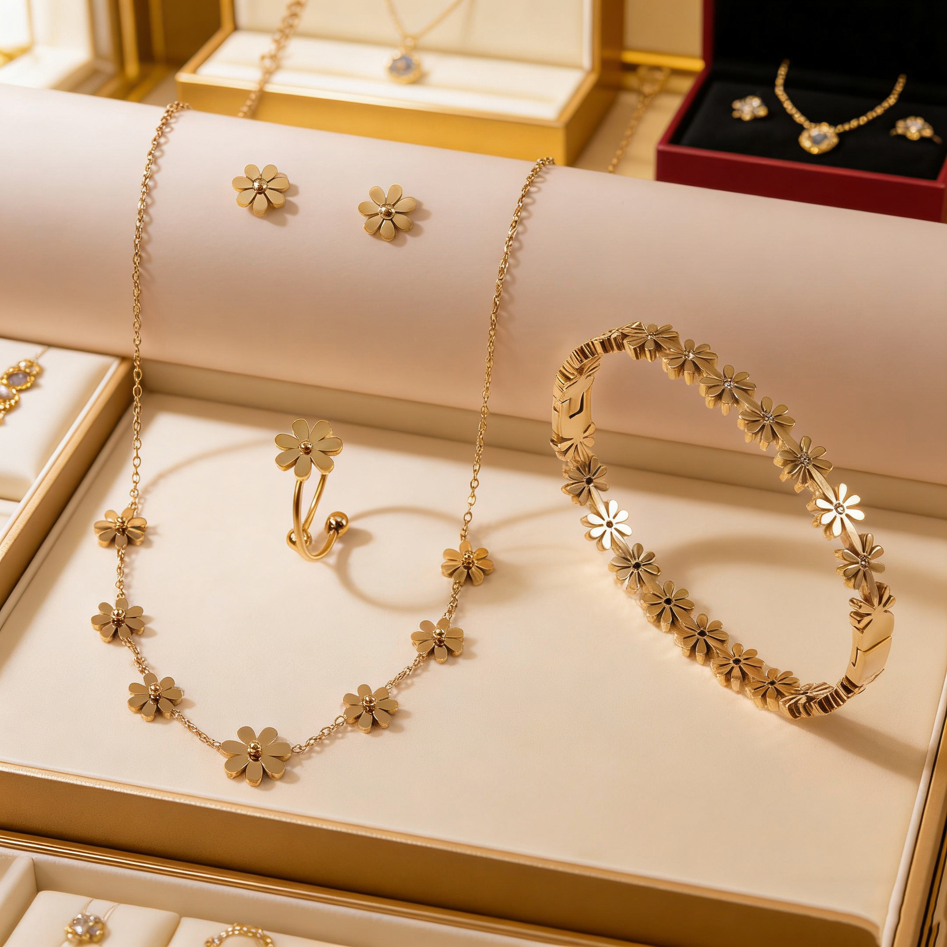 304 Stainless Steel Jewelry Set, Daisy, gold color plated, different styles for choice & for woman, Sold By PC