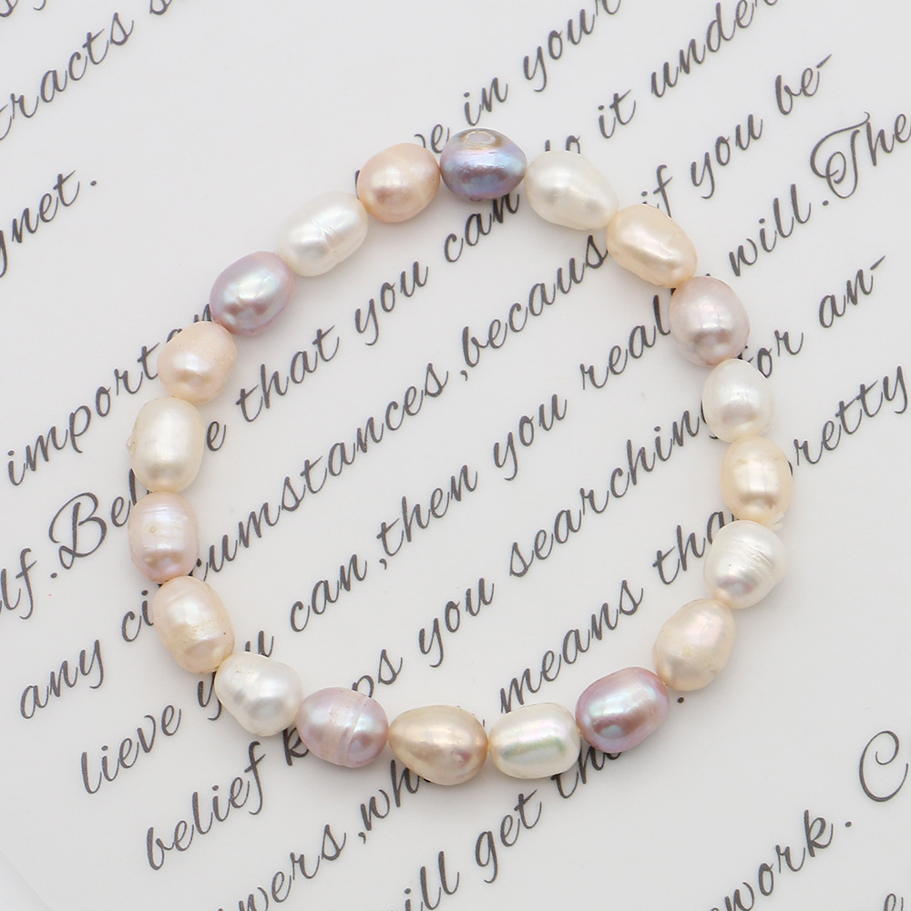 Freshwater Cultured Pearl Bracelet, Freshwater Pearl, Rice, fashion jewelry, mixed colors, 7-8mm, Length:20 cm, Sold By PC