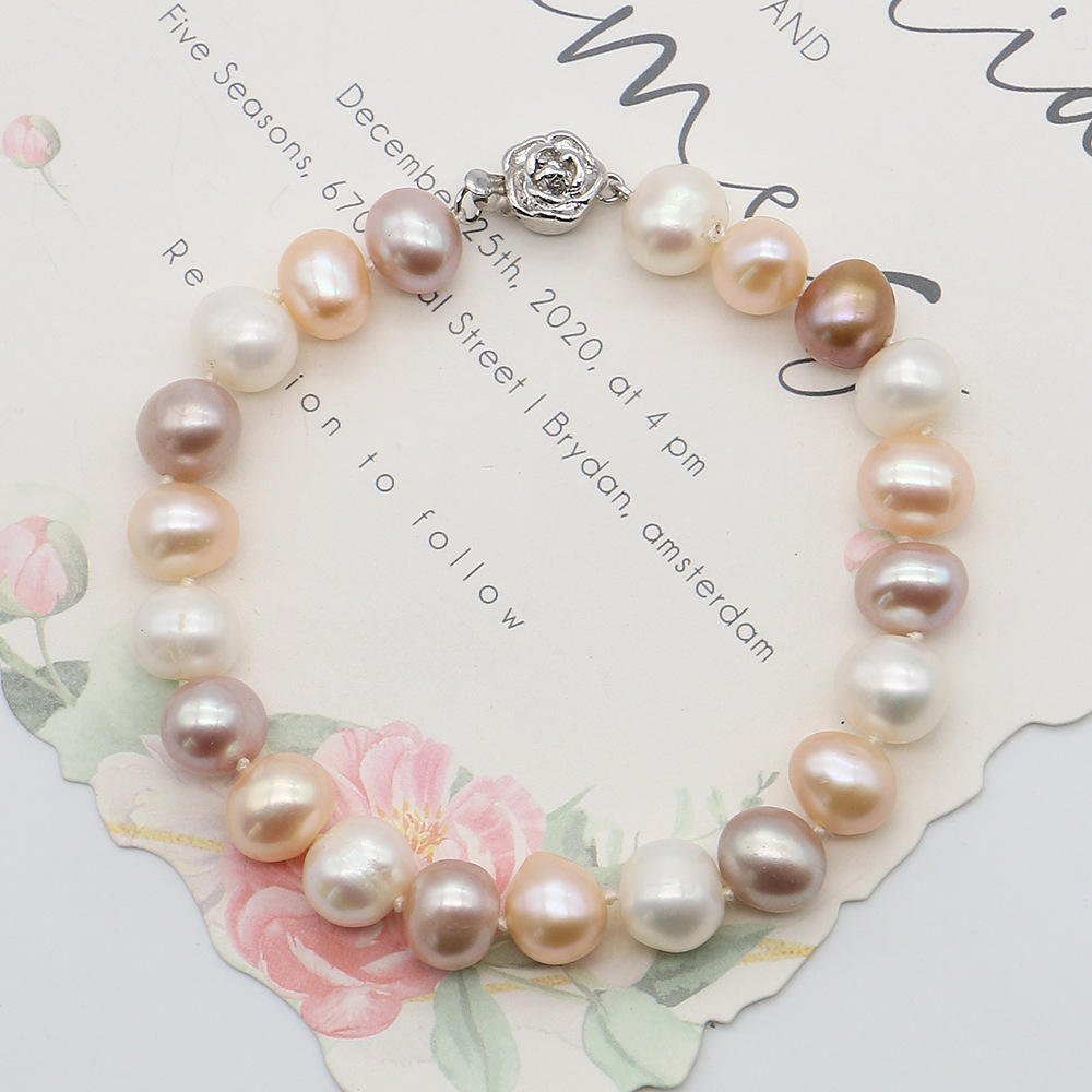 Freshwater Cultured Pearl Bracelet, Freshwater Pearl, with 304 Stainless Steel, Round, fashion jewelry, mixed colors, 9-10mm, Length:19 cm, Sold By PC