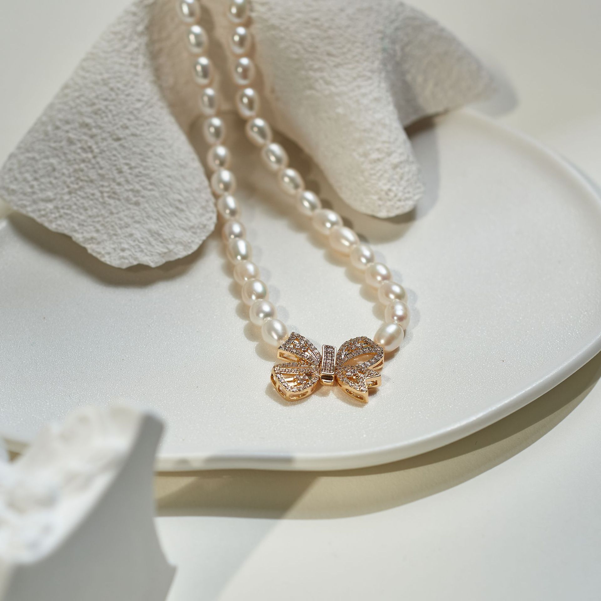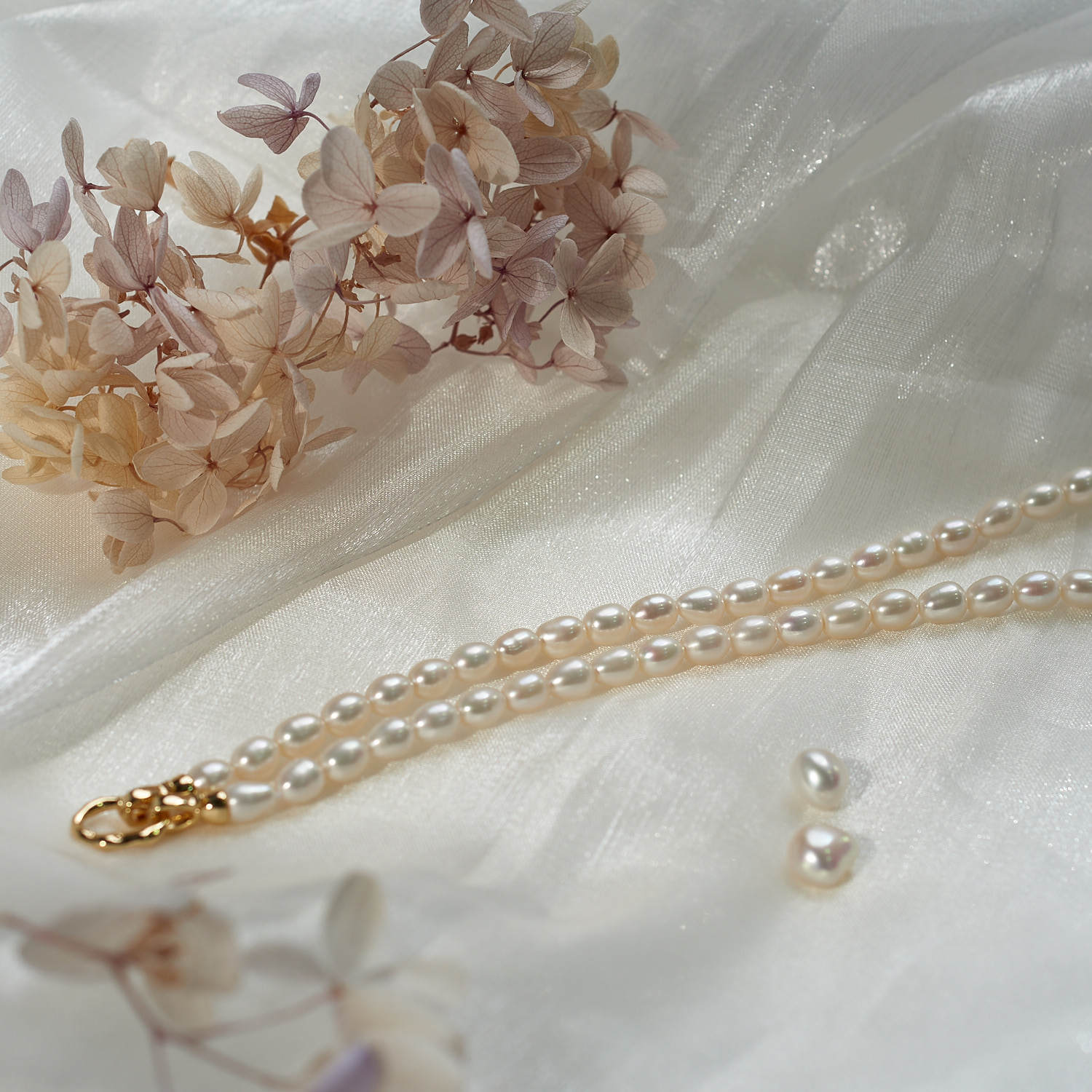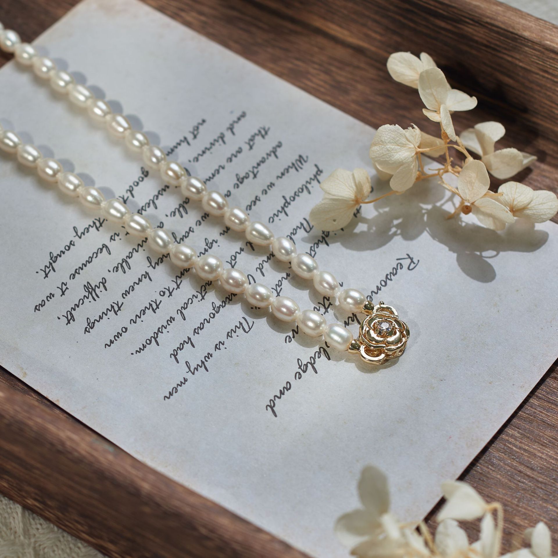 - Freshwater Pearl Brass Necklace, with Brass, Potato