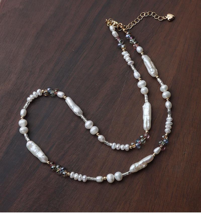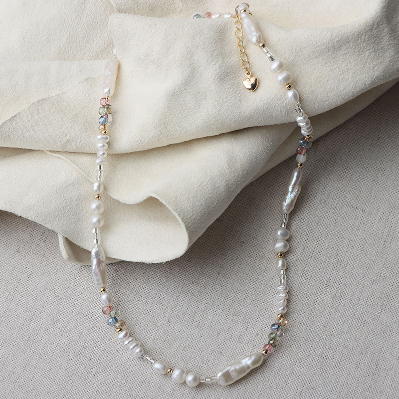 Freshwater Pearl Brass Necklace, with Crystal & Brass, Biwa, plated, fashion jewelry, more colors for choice, nickel, lead & cadmium free, 5-7mm, Sold By PC