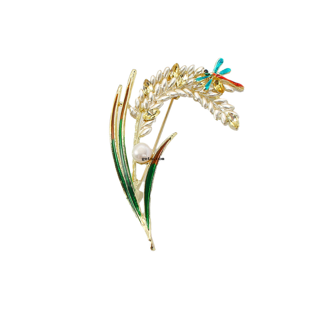 Freshwater Pearl Brooch, Tibetan Style, with Freshwater Pearl, gold color plated, fashion jewelry & enamel & with rhinestone, more colors for choice, 41.51x11.28x70.08mm, Sold By PC