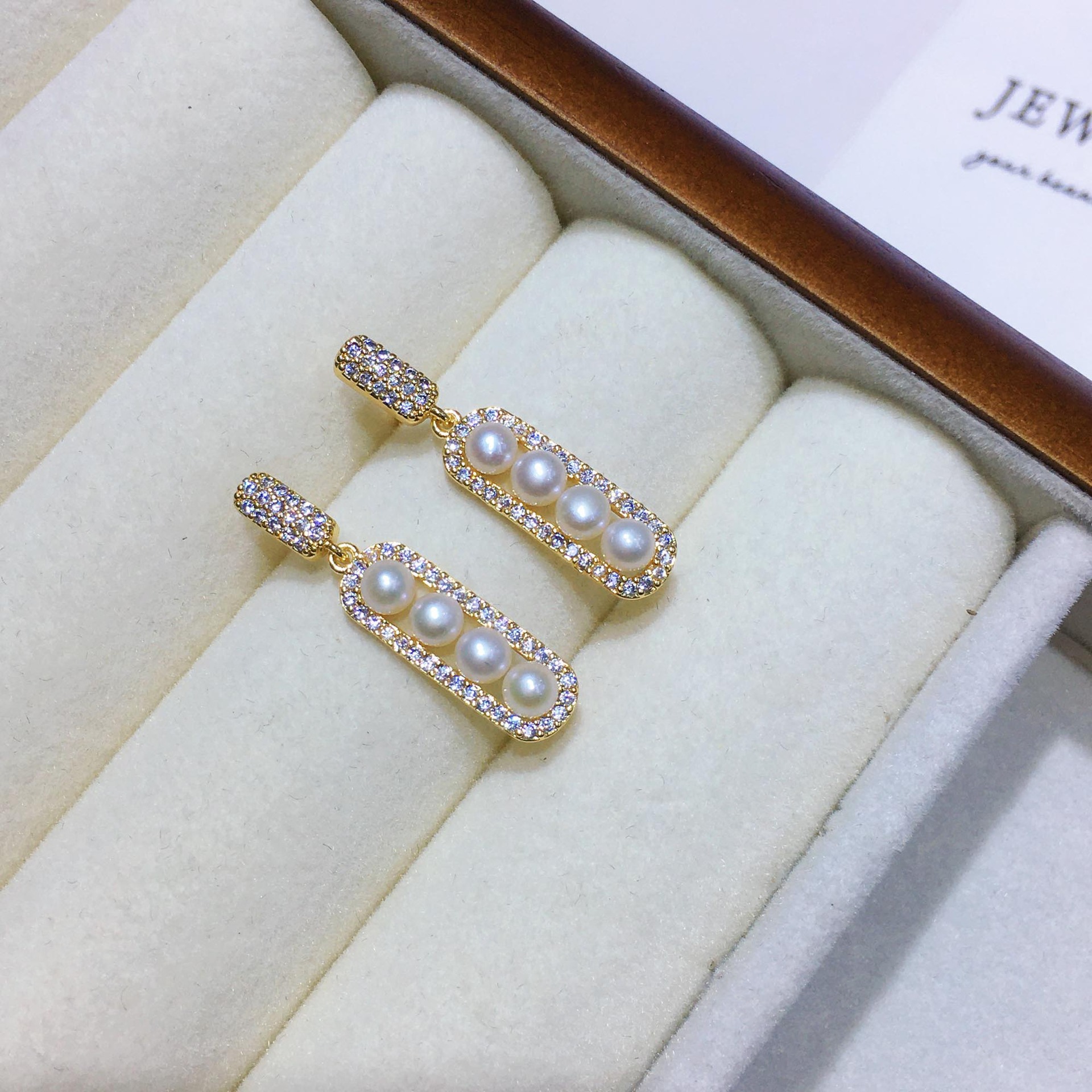 - Freshwater Pearl Drop Earring, with Brass, Rice