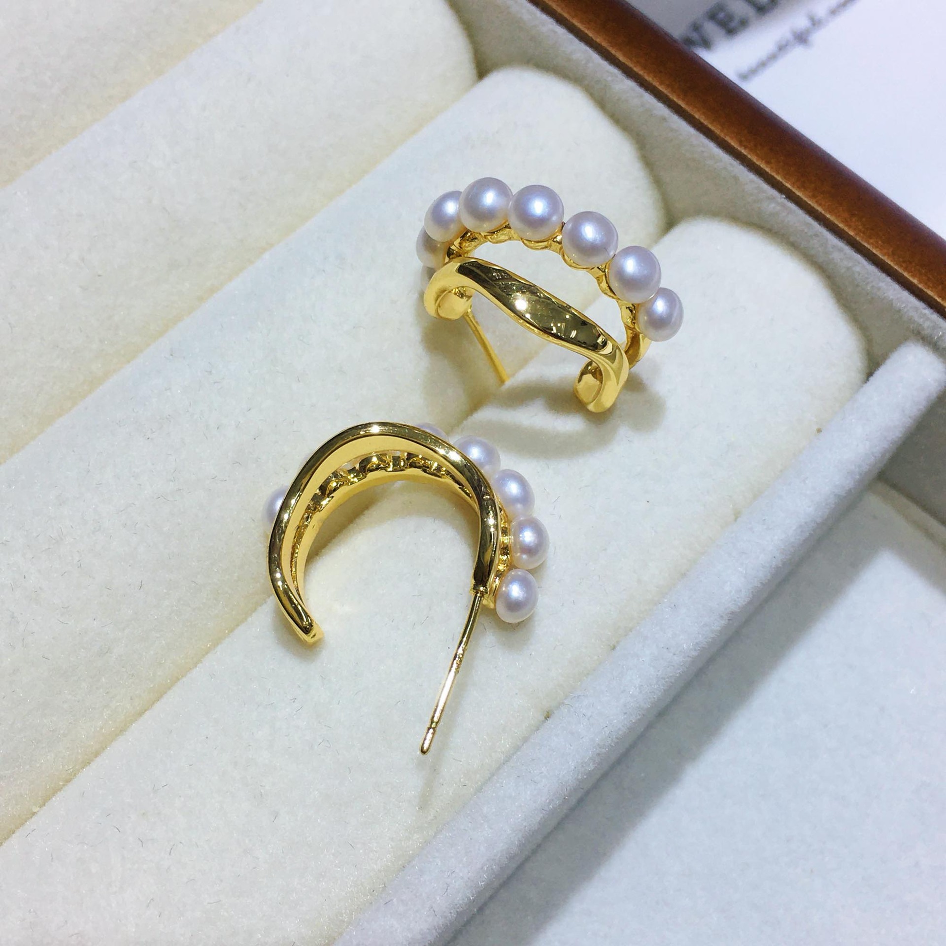 - Freshwater Pearl Stud Earring, with Brass, Flower
