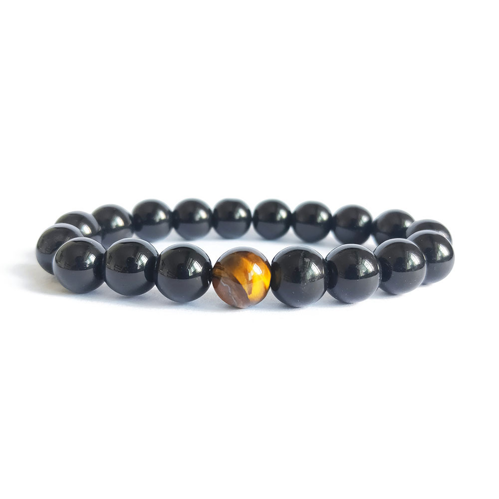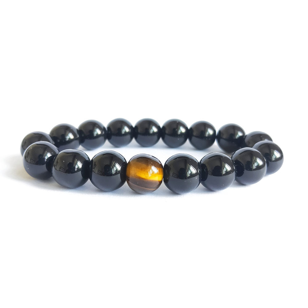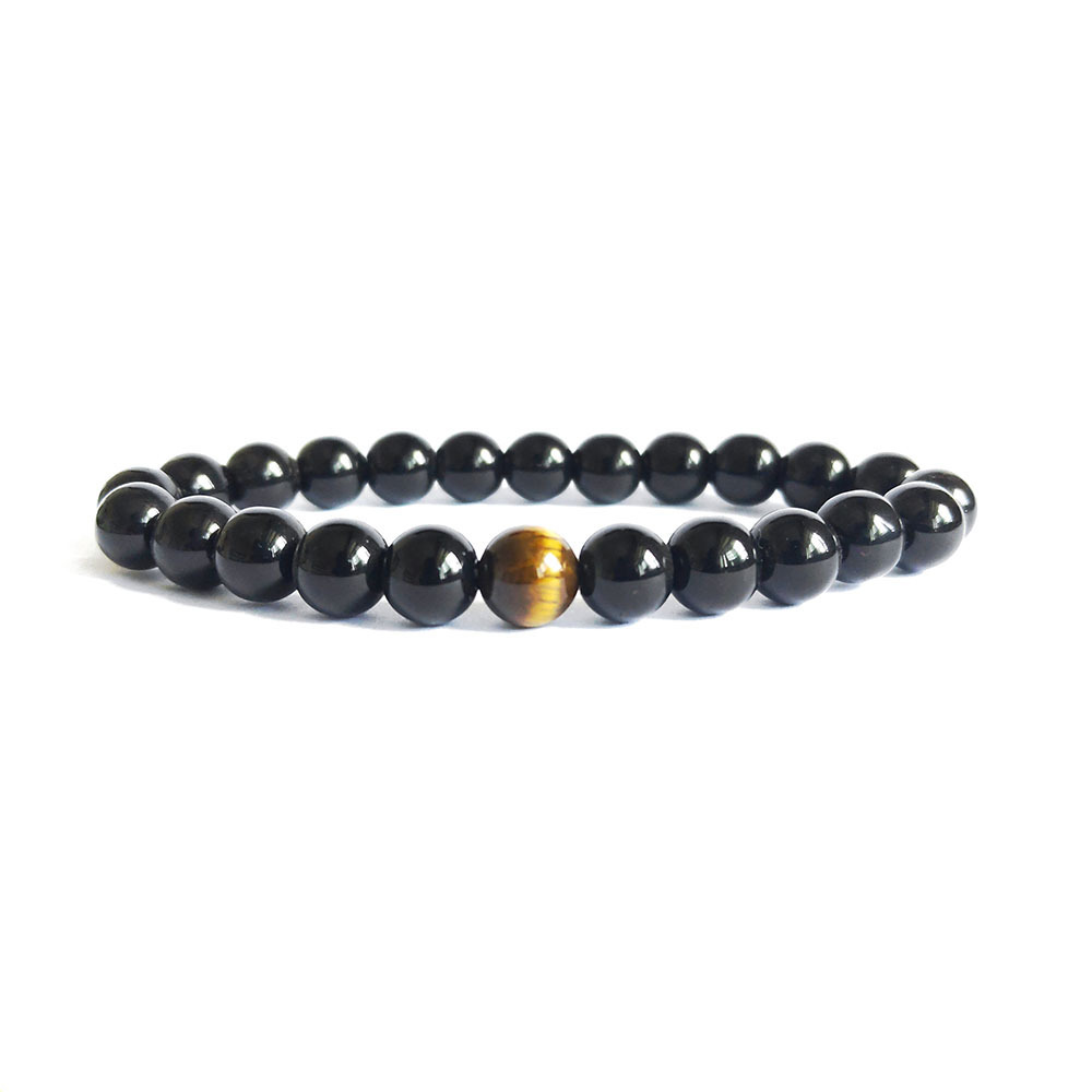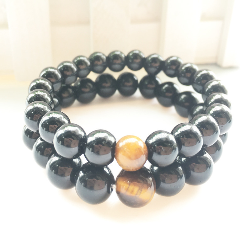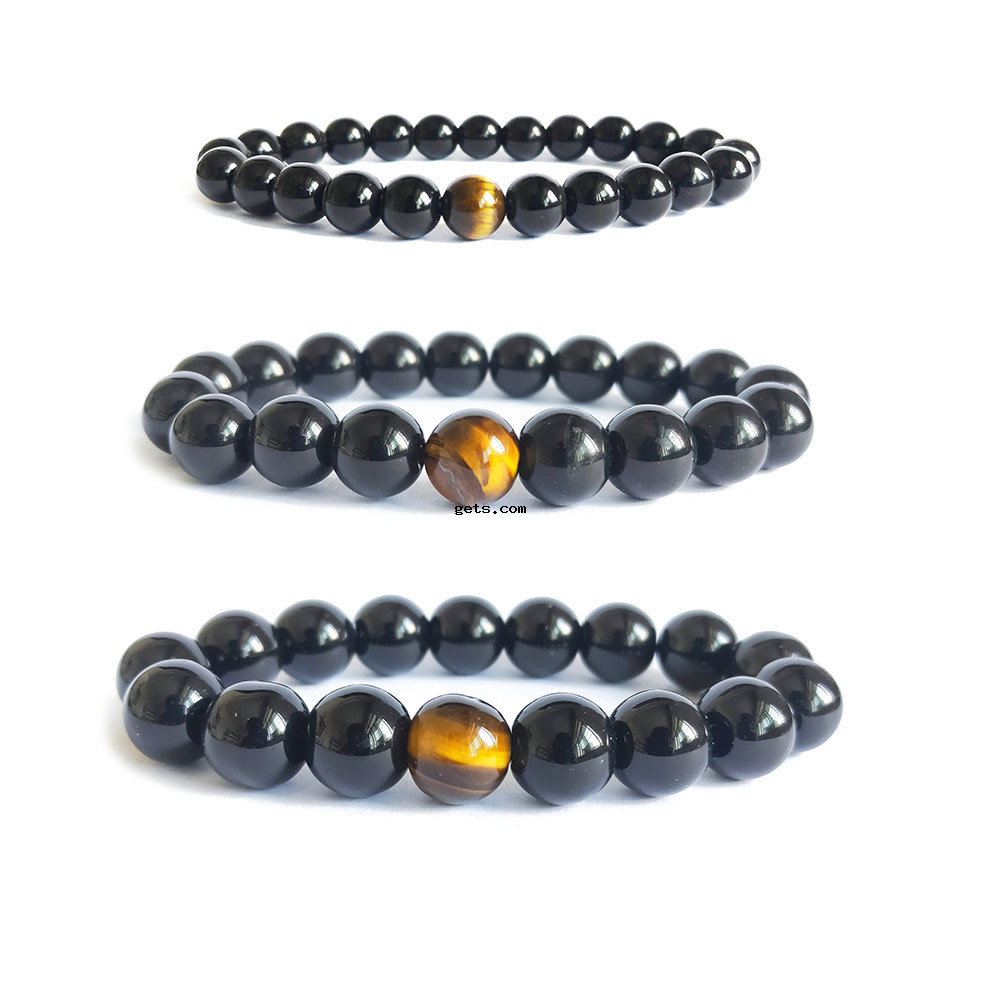 Gemstone Bracelets, Black Stone, with Tiger Eye, fashion jewelry, mixed colors, Length:21 cm, Sold By PC