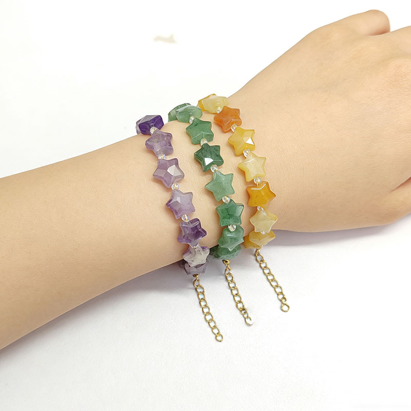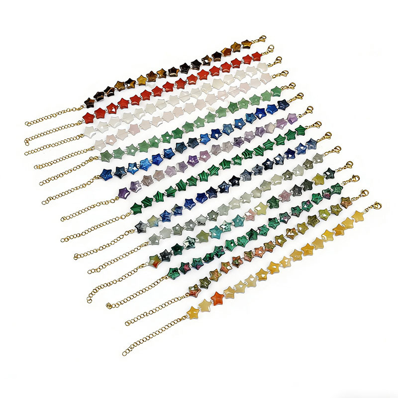 Gemstone Bracelet, with Seedbead & 304 Stainless Steel, with 5cm extender chain, Star, gold color plated, different materials for choice & for woman, Length:Approx 17 cm, Sold By PC