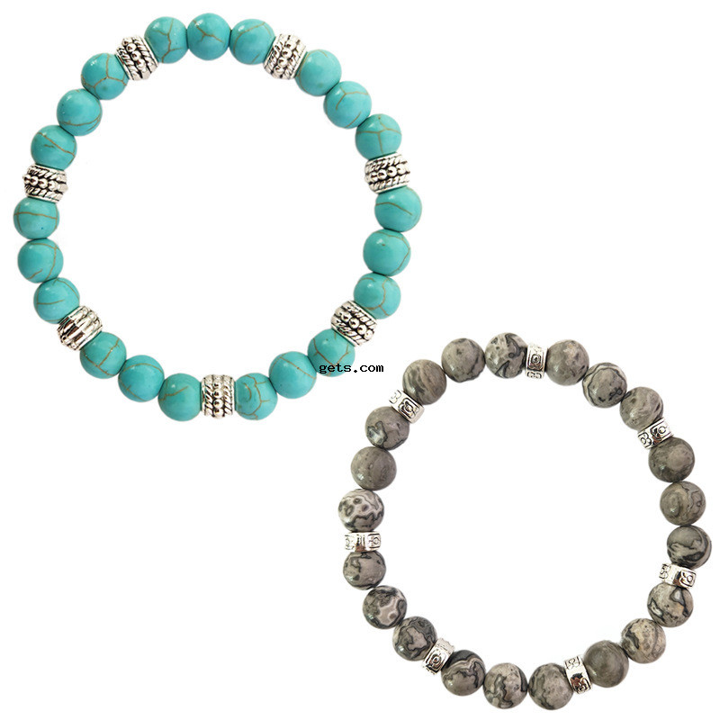 Gemstone Bracelets, Natural Stone, with Tibetan Style, fashion jewelry, more colors for choice, 8mm, Length:21 cm, Sold By PC