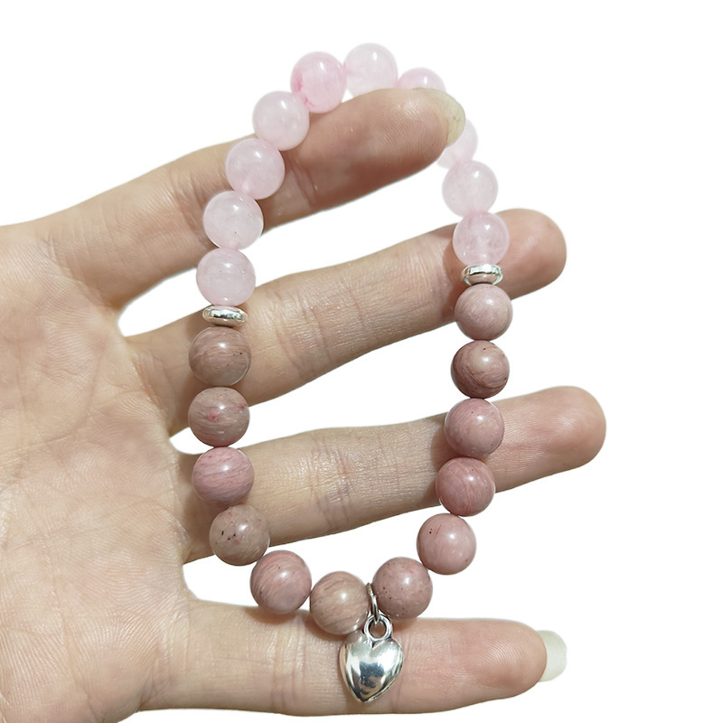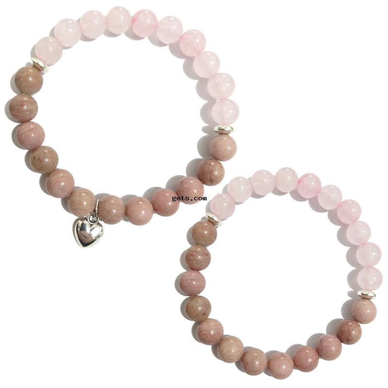 Gemstone Bracelets, Rose Quartz, with Rhodochrosite, fashion jewelry, mixed colors, 8mm, Length:21 cm, Sold By PC